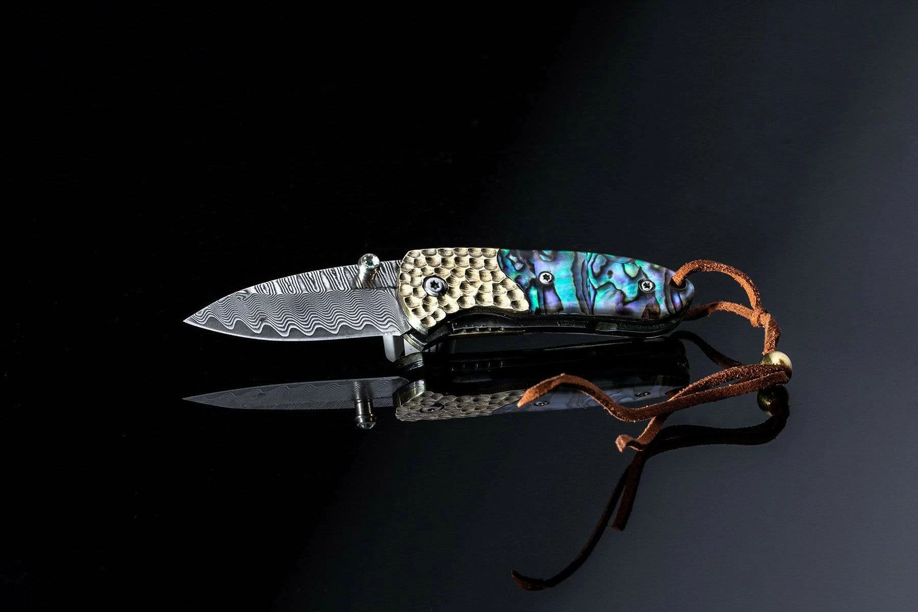 - Abalone Shell Handle w/ Hammered Brass Bolster