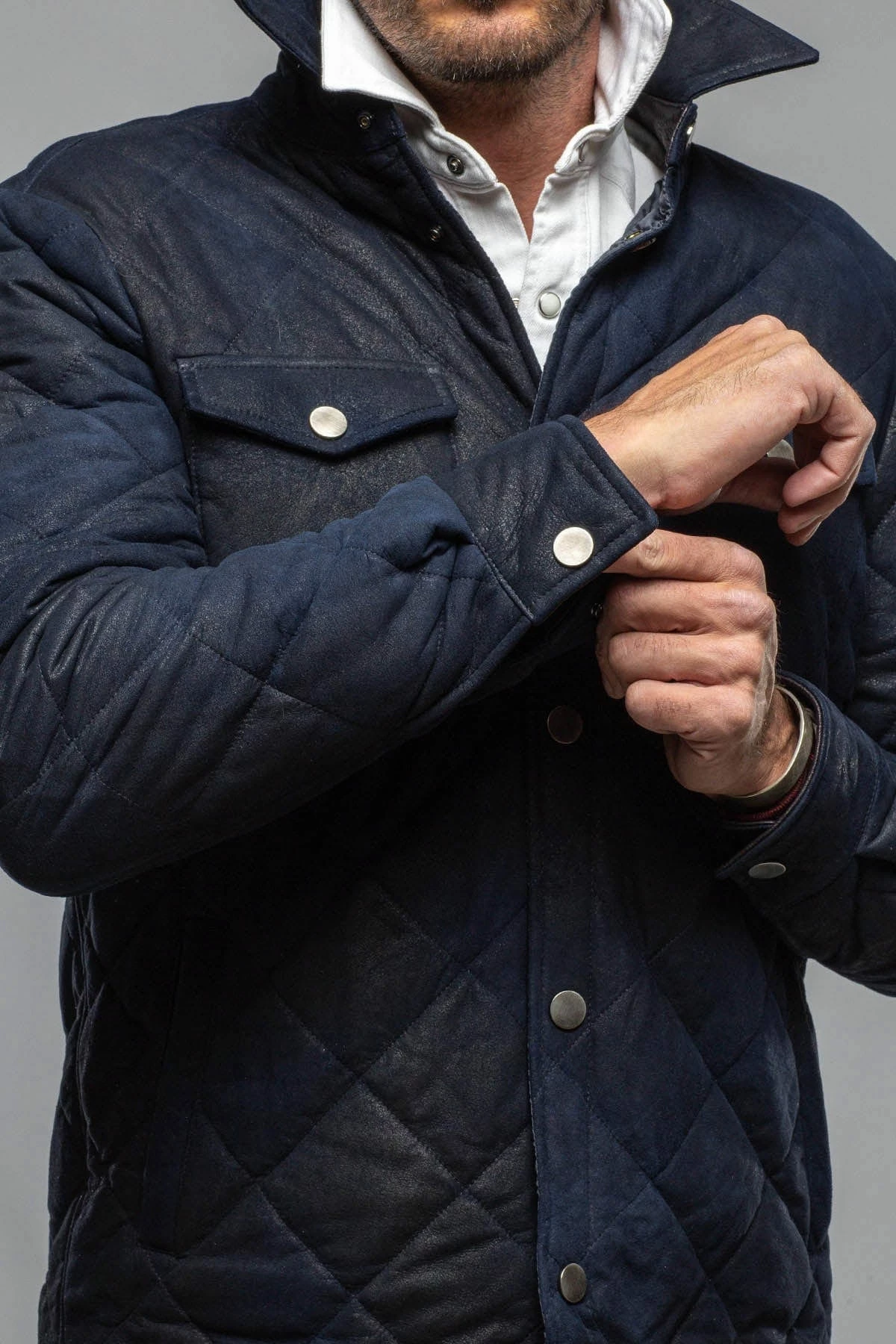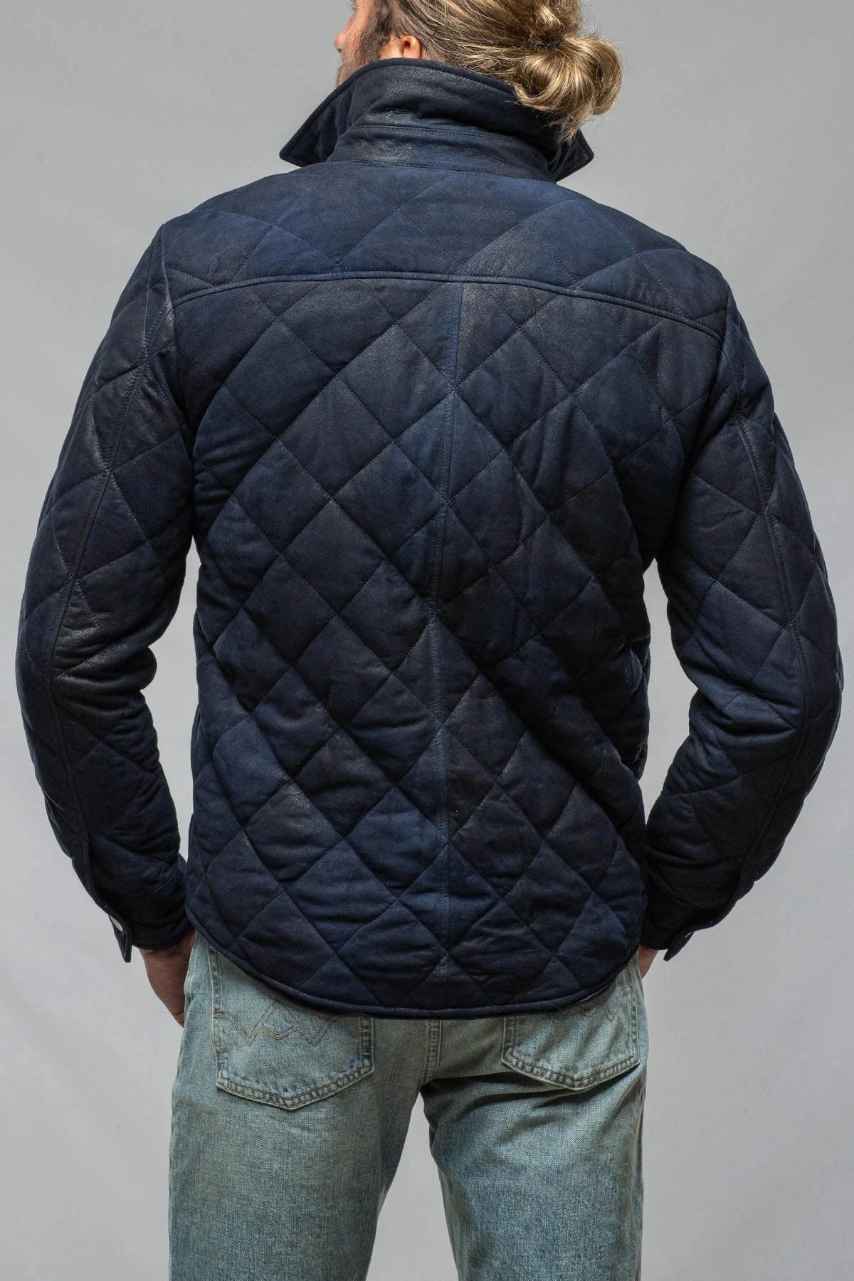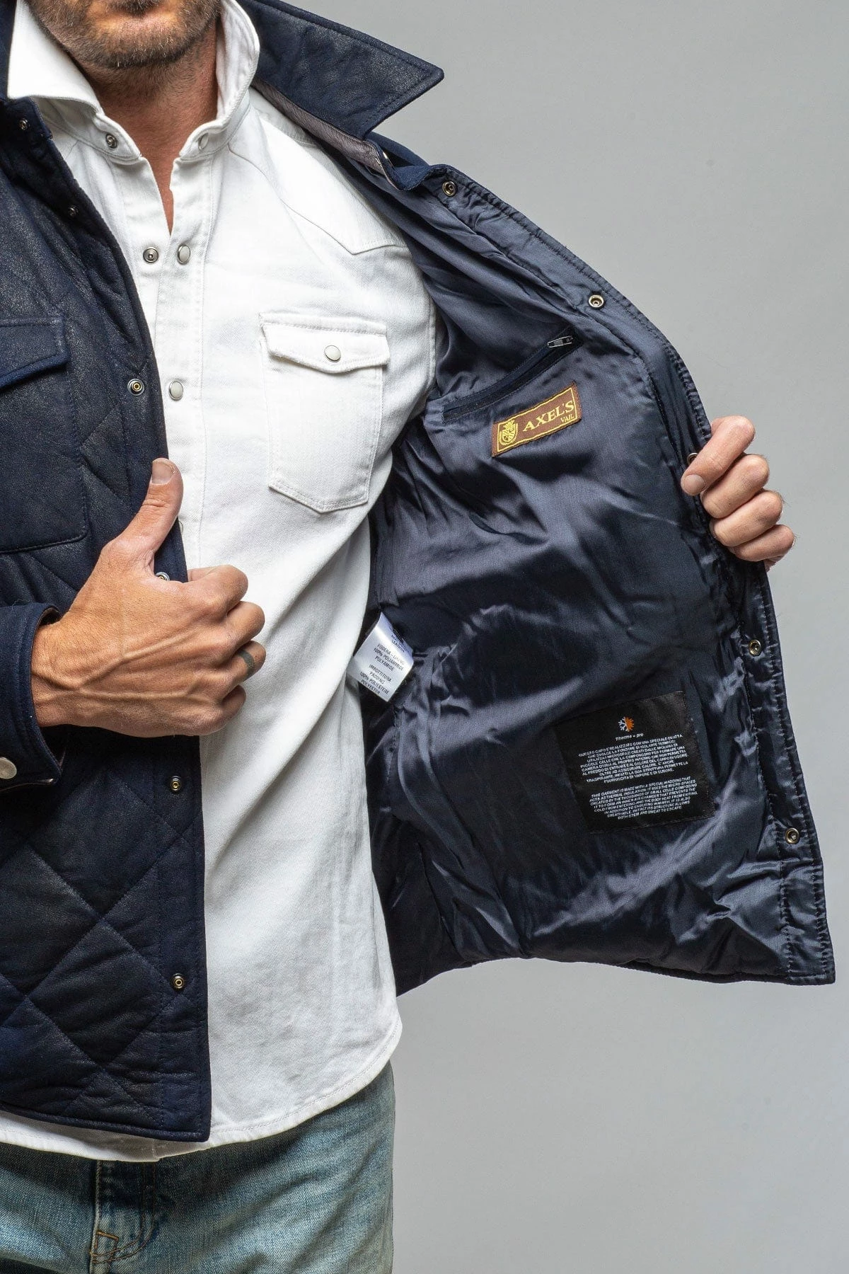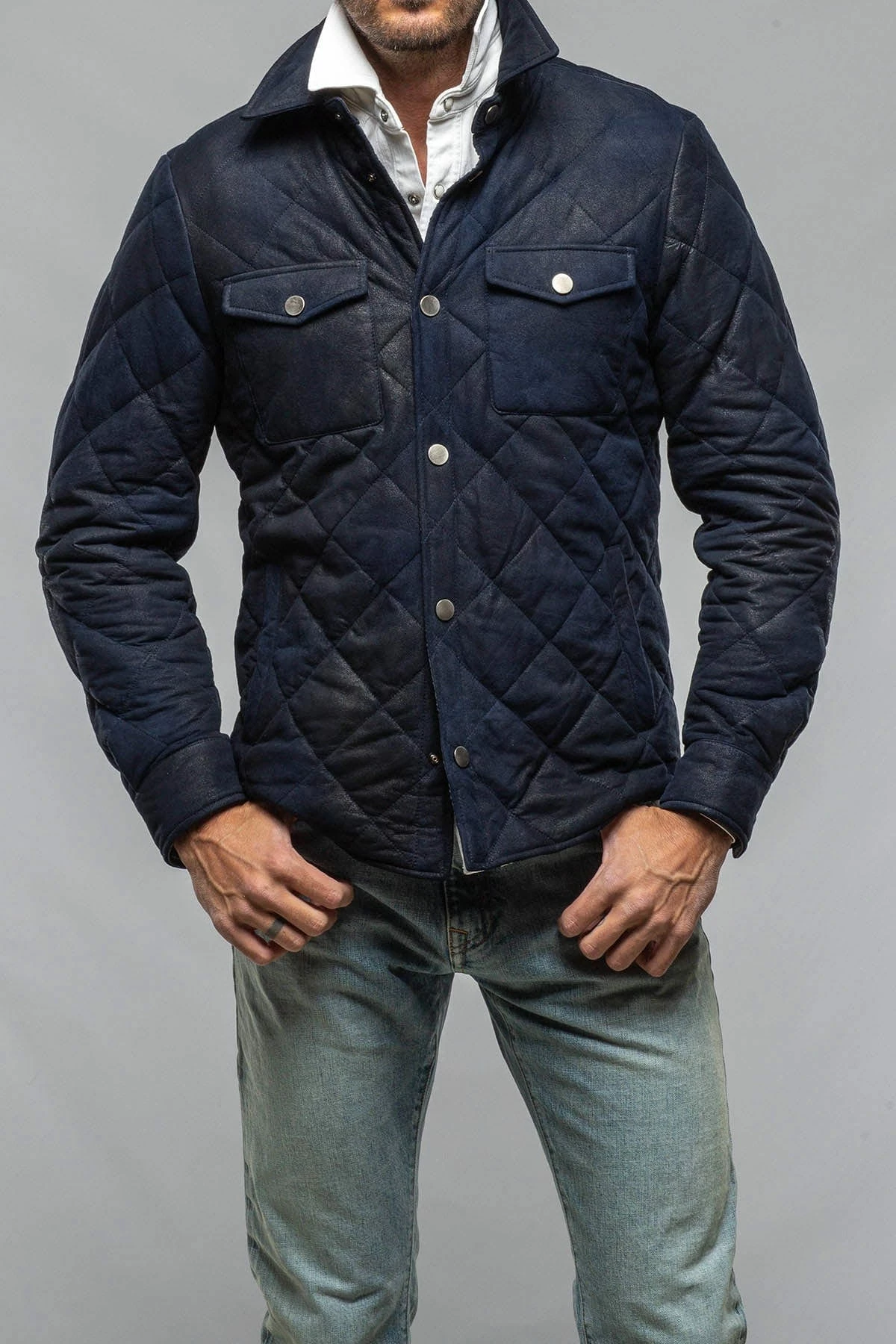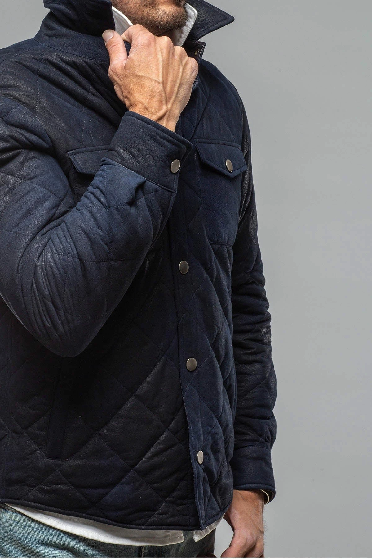 Part of Axel’s Signature Collection, the Academia Jacket features the classic look of a collegiate-styled jacket, elevated by rich color and luxe detailing. Made from a quilted lambskin with a slightly insulated lining, the shirt-style hemline guarantees a modern fit with casual versatility. The color turned out especially well: rich navy burnished with a gunmetal effect makes for an unexpected, impressive pairing that takes the beloved style up a notch.