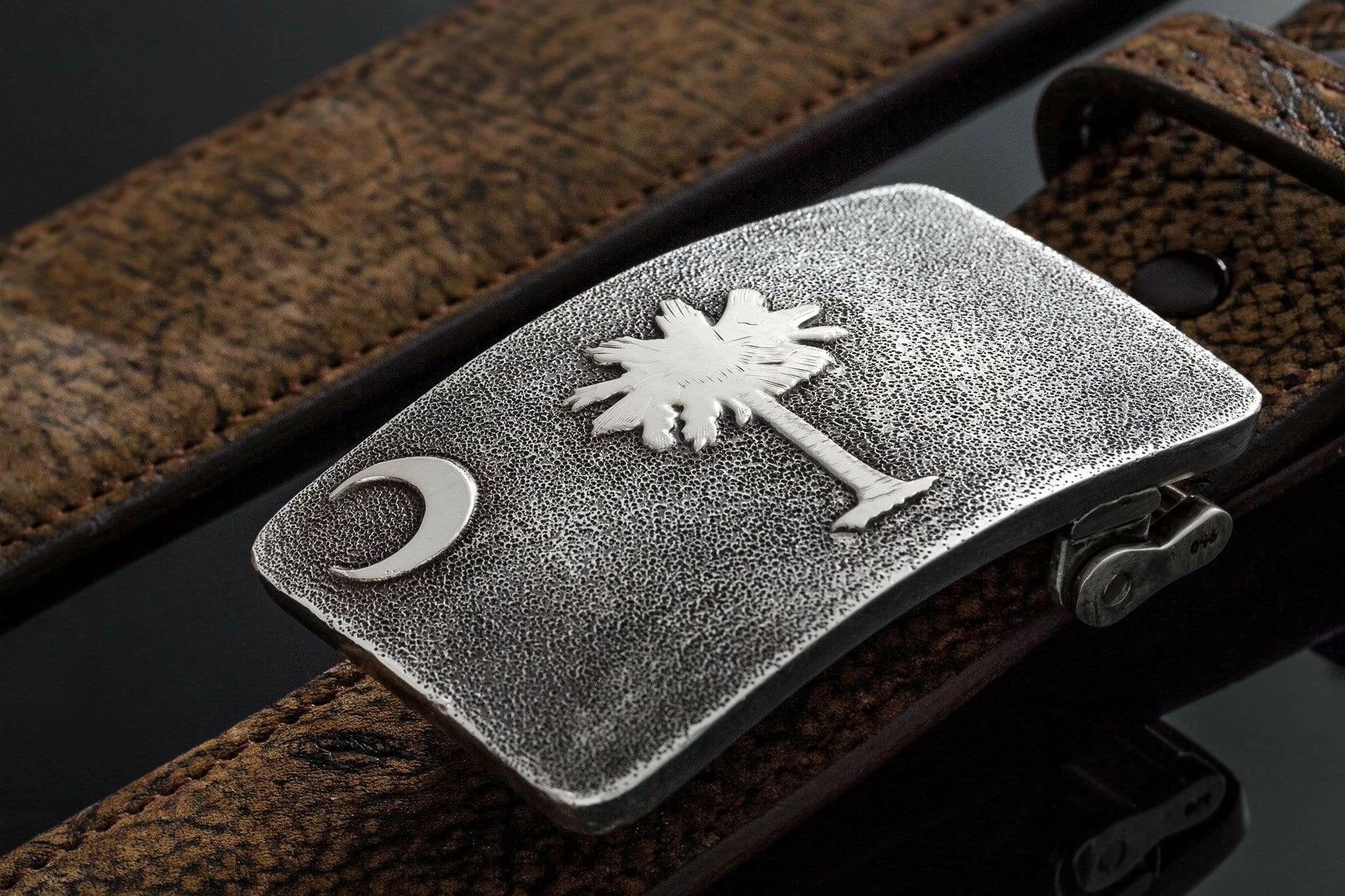 - Available with a With White Gold or Sterling Silver Palmetto & Crescent Moon