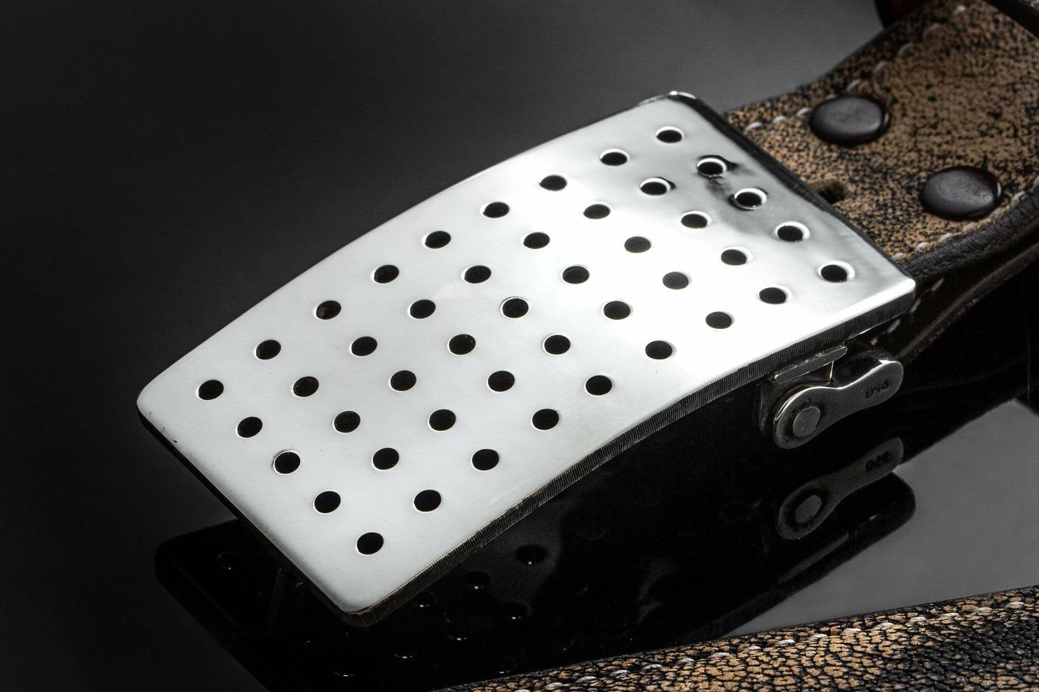 - Moveable bale allowing the belt to self-level thereby keeping the buckle flat