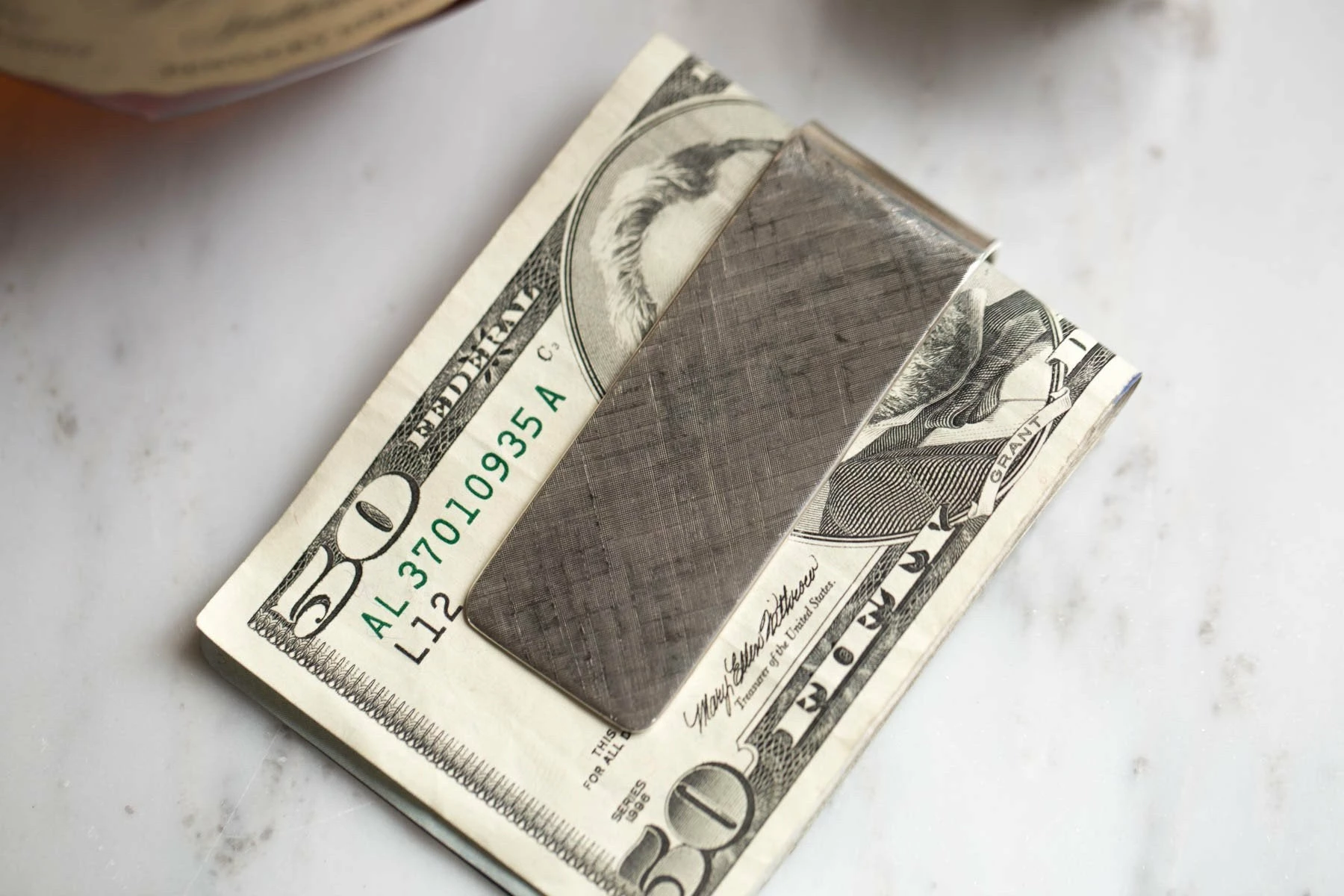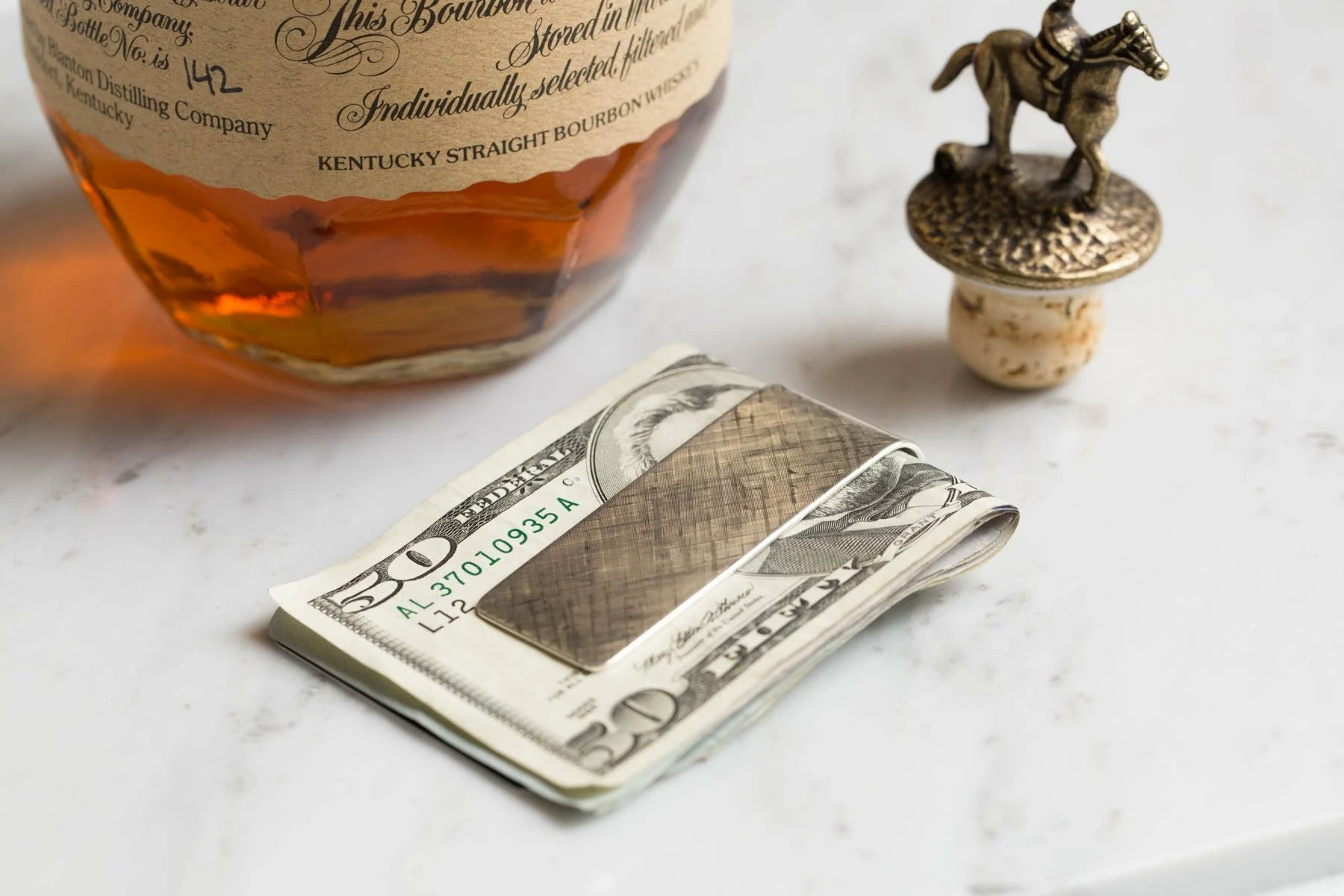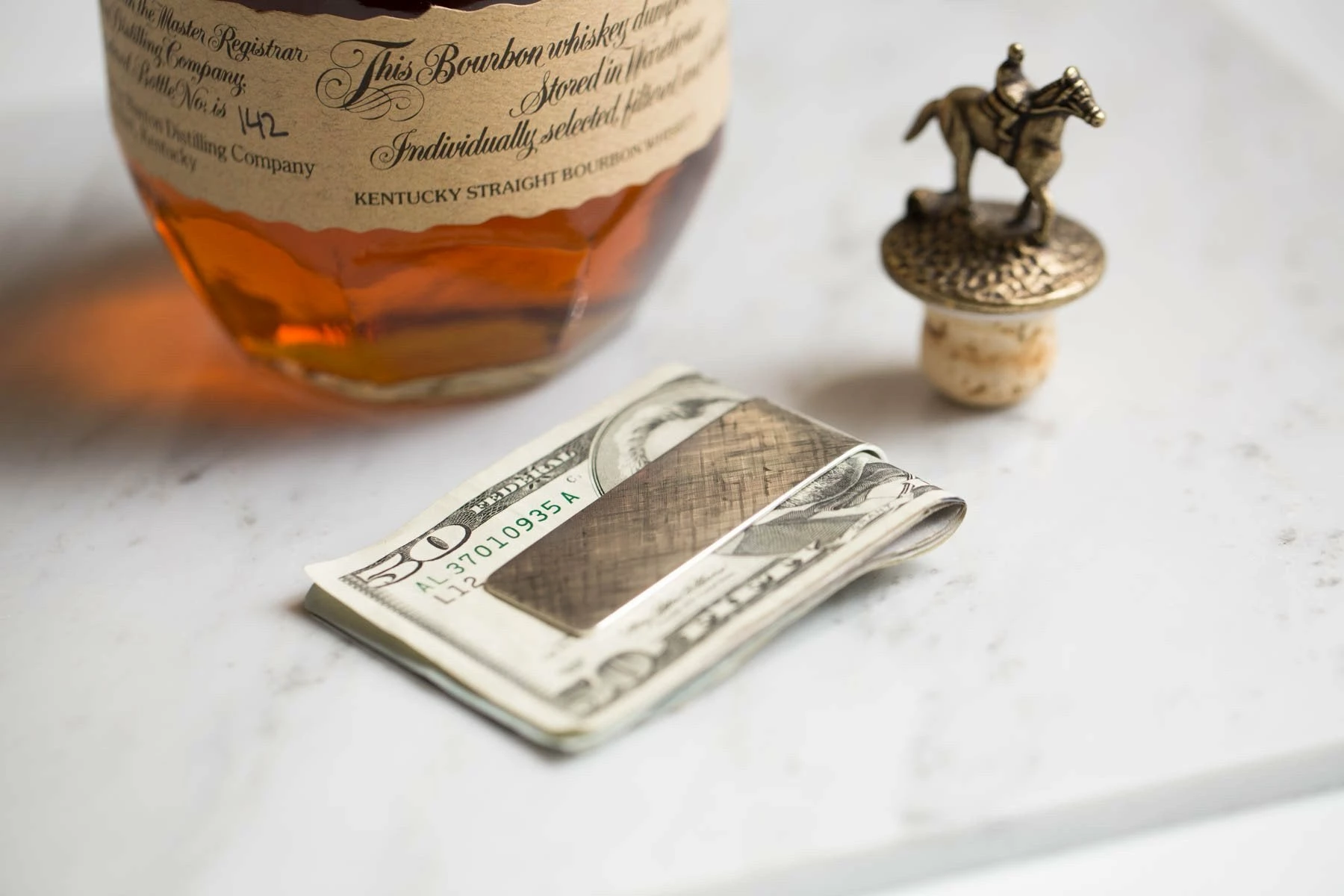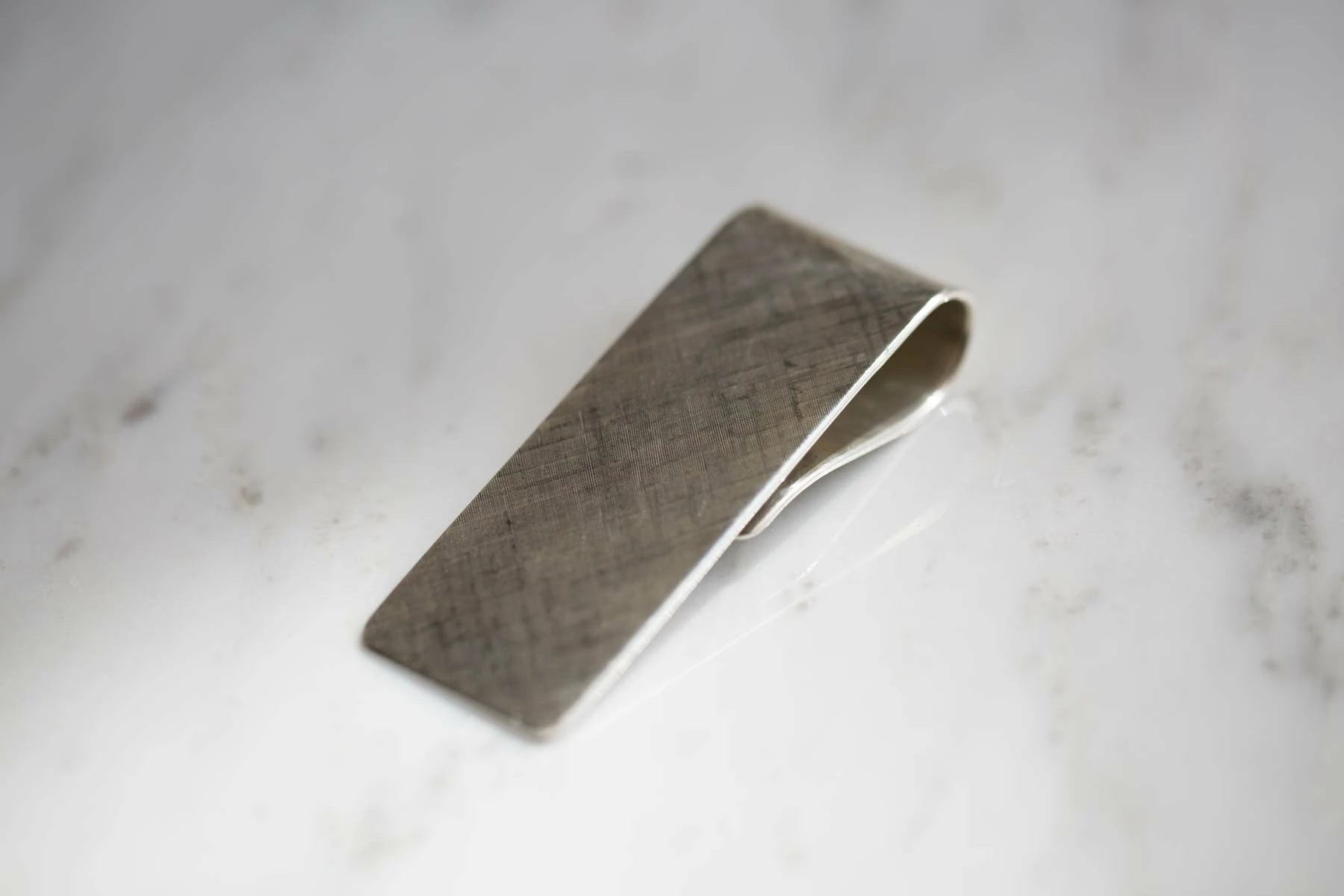 Stirling silver heavey gauge money clip with Florentine engraving. 21/2″ x 1″.