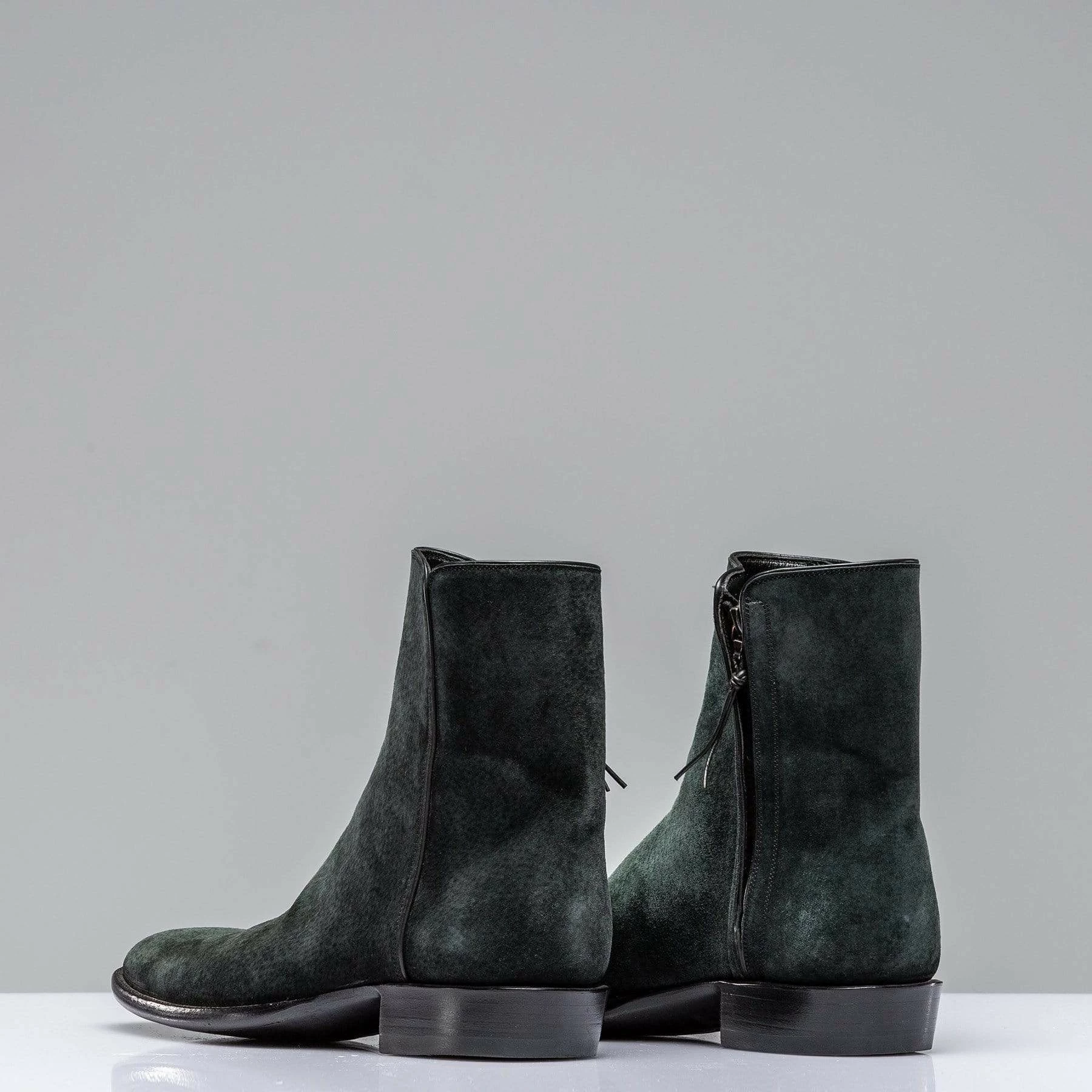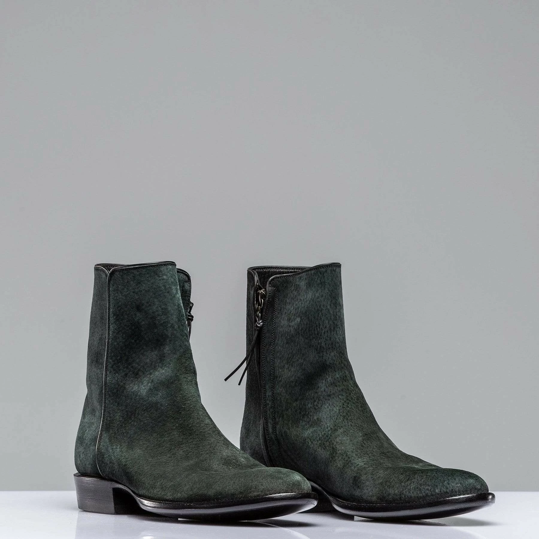 The nubuck Chelsea boot is a low-profile Roper-style boot that boasts unmatched quality in its simplicity. A washed black suede nubuck skin creates an unexpected finish, while the overall styling puts it squarely between a dress boot and a cowboy boot. Side-zipper makes for easy-on-off and all but guarantees a good fit. Also works with a wider range of jean cuts (an underrated convenience). Each pair is handmade by artisans from Stallion Boot Company of El Paso, Texas with 30 or more years of experience.