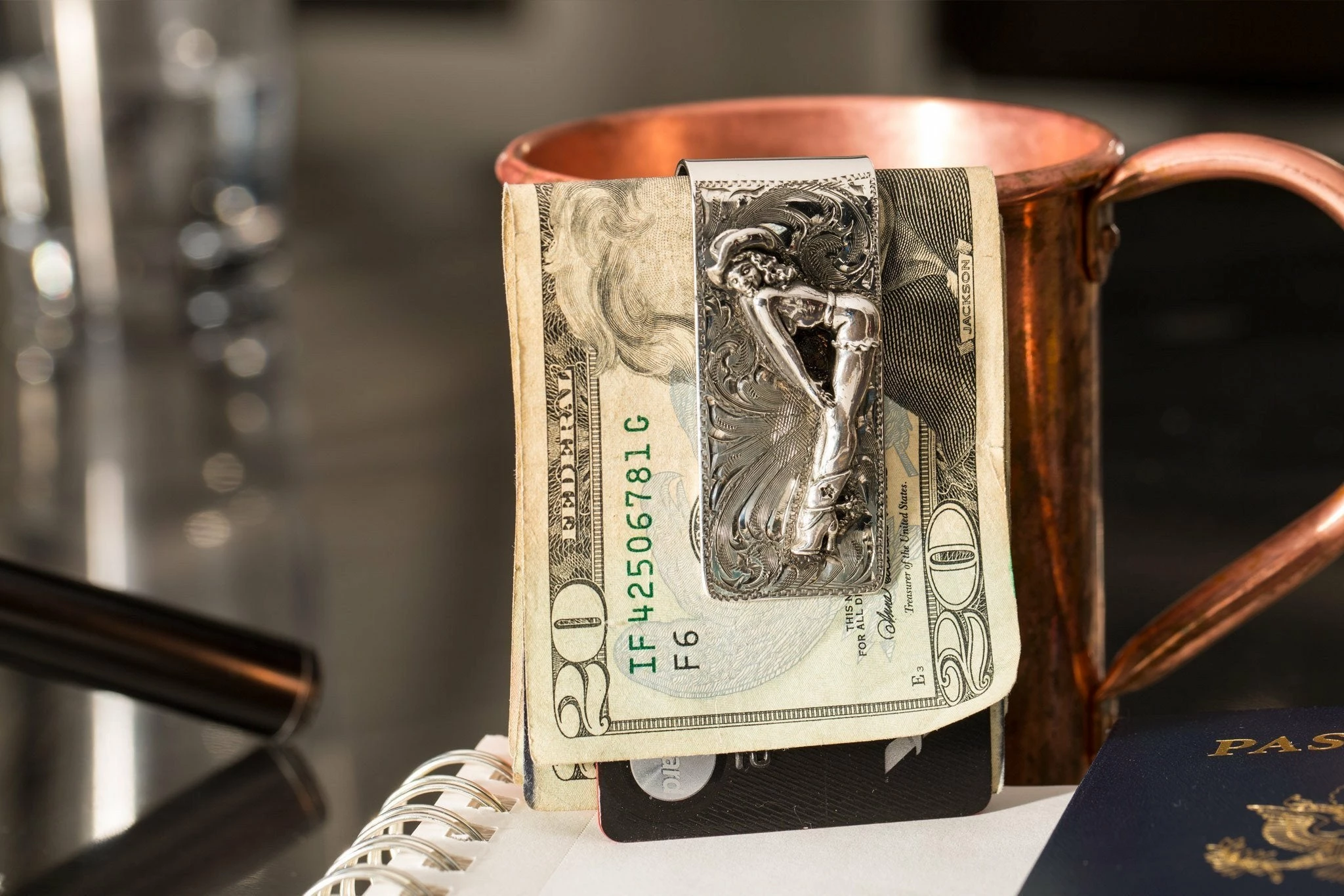 Like its twin Bailey, the Brady features the smith’s trademark rodeo gal figure. Playful, carefree, and easy on the eyes, Brady will keep your cash close—but never at the expense of a good time.