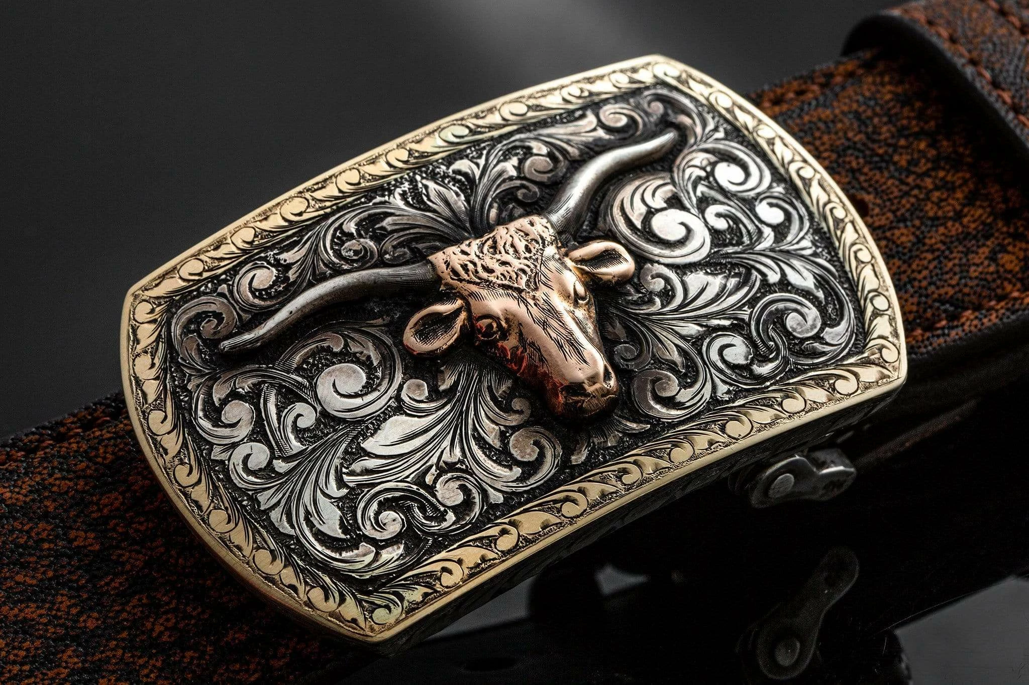 - The Branson Longhorn is an extra heavy distressed Branson shape sterling silver buckle featuring a hand-cast longhorn with 14k yellow gold head in the center