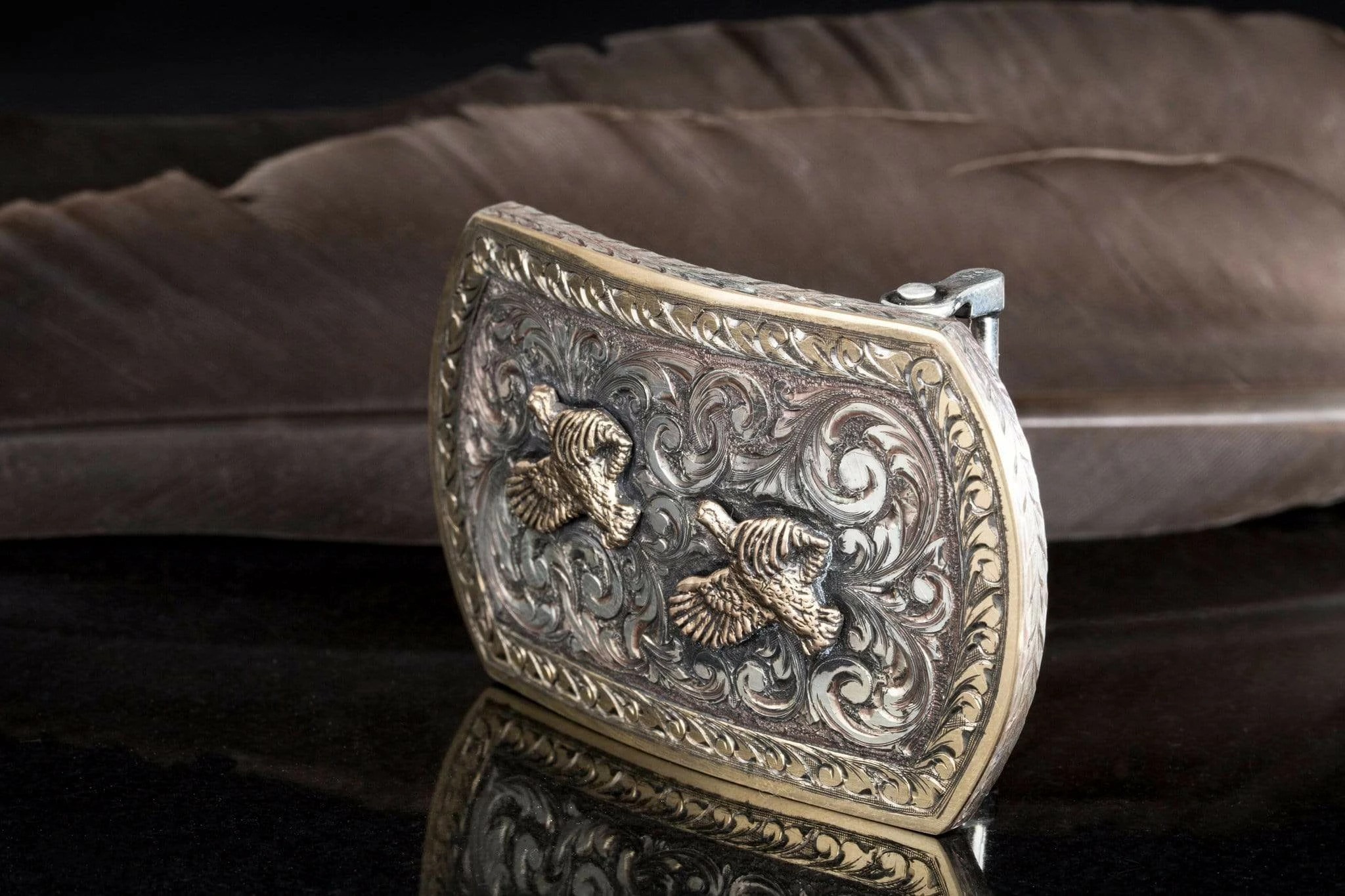 Branson Quail 14K Buckle fits a 1.5″ belt.