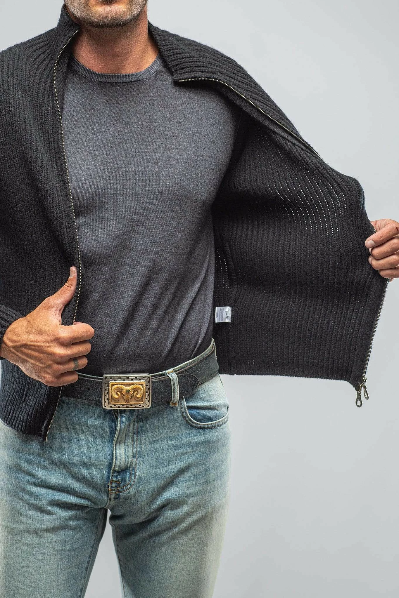 Spun from the highest grade Cashmere, sourced from Himalayan goats living in the high mountains, this robust jacket has a slim profile with ribbed fabric to prevent it from stretching out of shape. The stand-up collar and zipped front make it particularly smart.