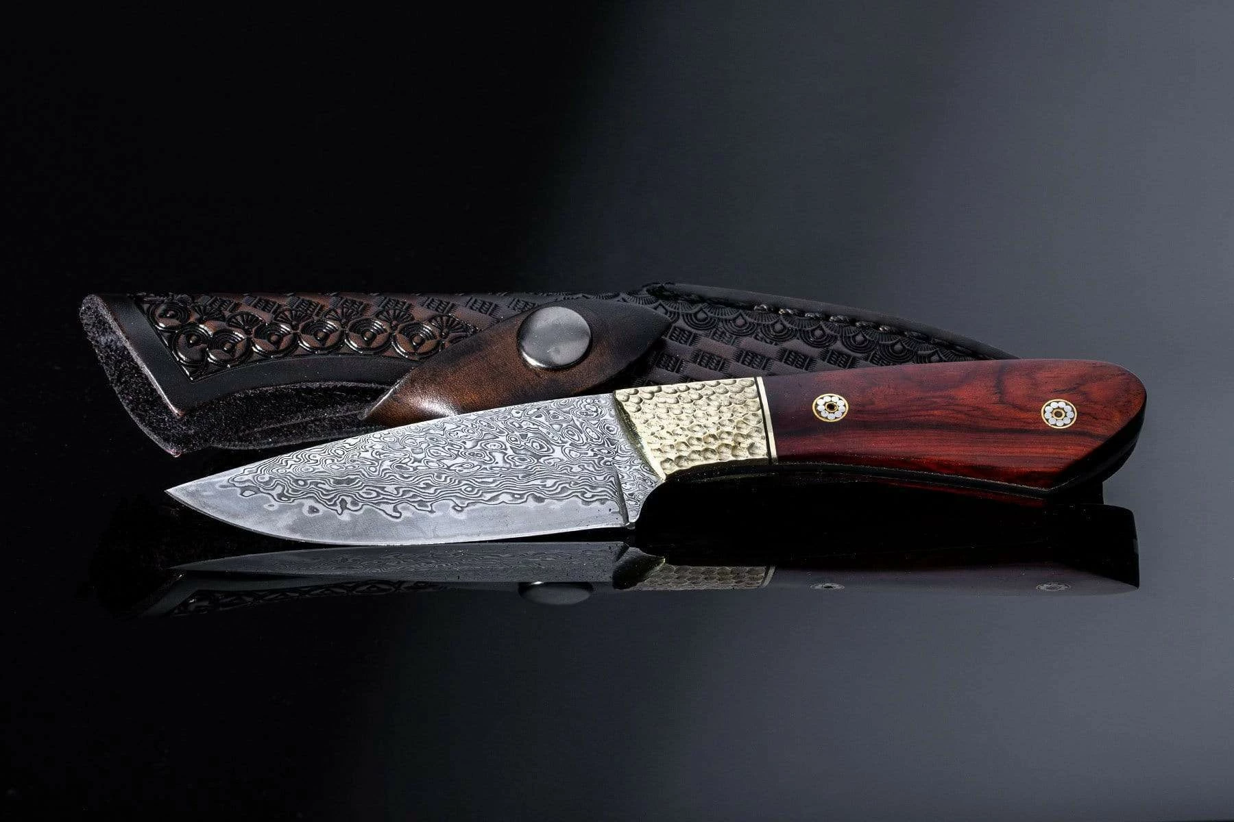 - VG10 Damascus Steel Blade – Brass Bolster