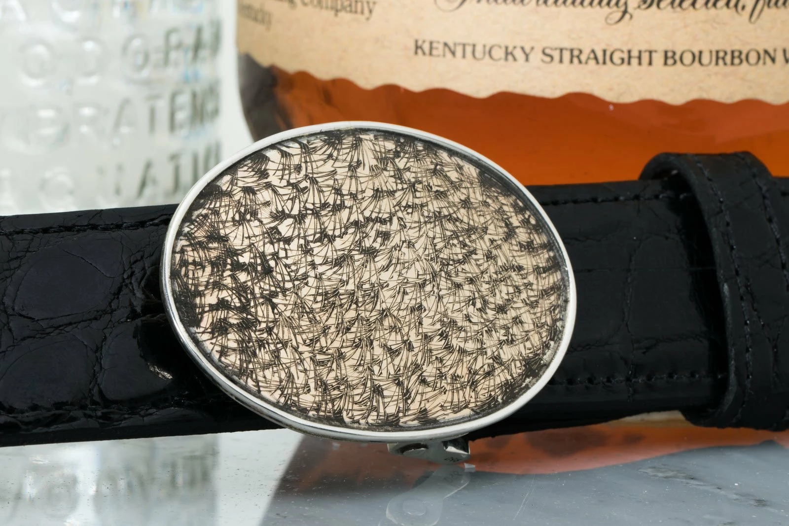 Every so often I am freshly dumbstruck at the fact that our good friends at Comstock do all of their engraving by hand. That happened again recently with this buckle, featuring their original Poe technique. I’ve watched, and I still don’t know how they do it. Sterling silver & 14k yellow gold. Fits all 30MM belts.