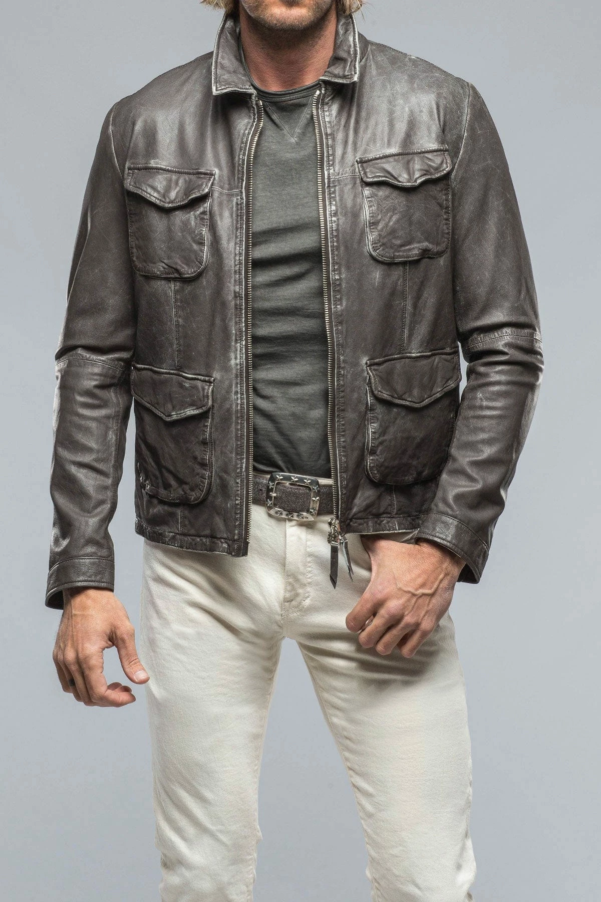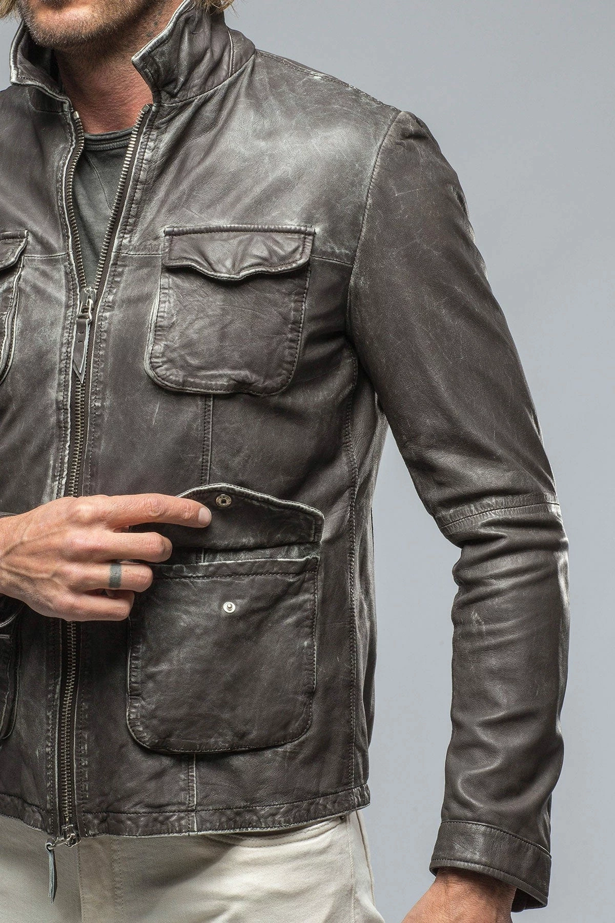 A softer take on leather; the Dino jacket from Gimo’s features the same “cool-guy” attitude of its moto jacket counterparts, but shifts away from a stark, harsher aesthetic. Buttery soft lambskin that has been veg-dyed into a brown and charcoal tone, the precision craftsmanship of the four-pocket silhouette brings the style over the top.