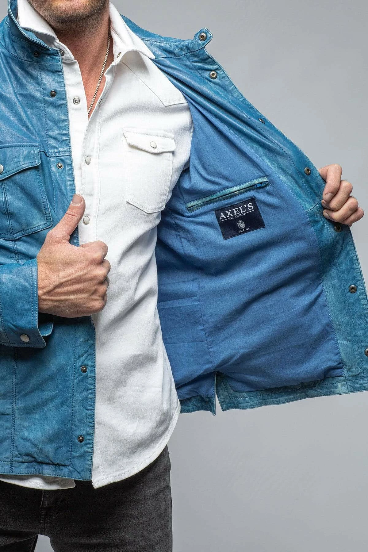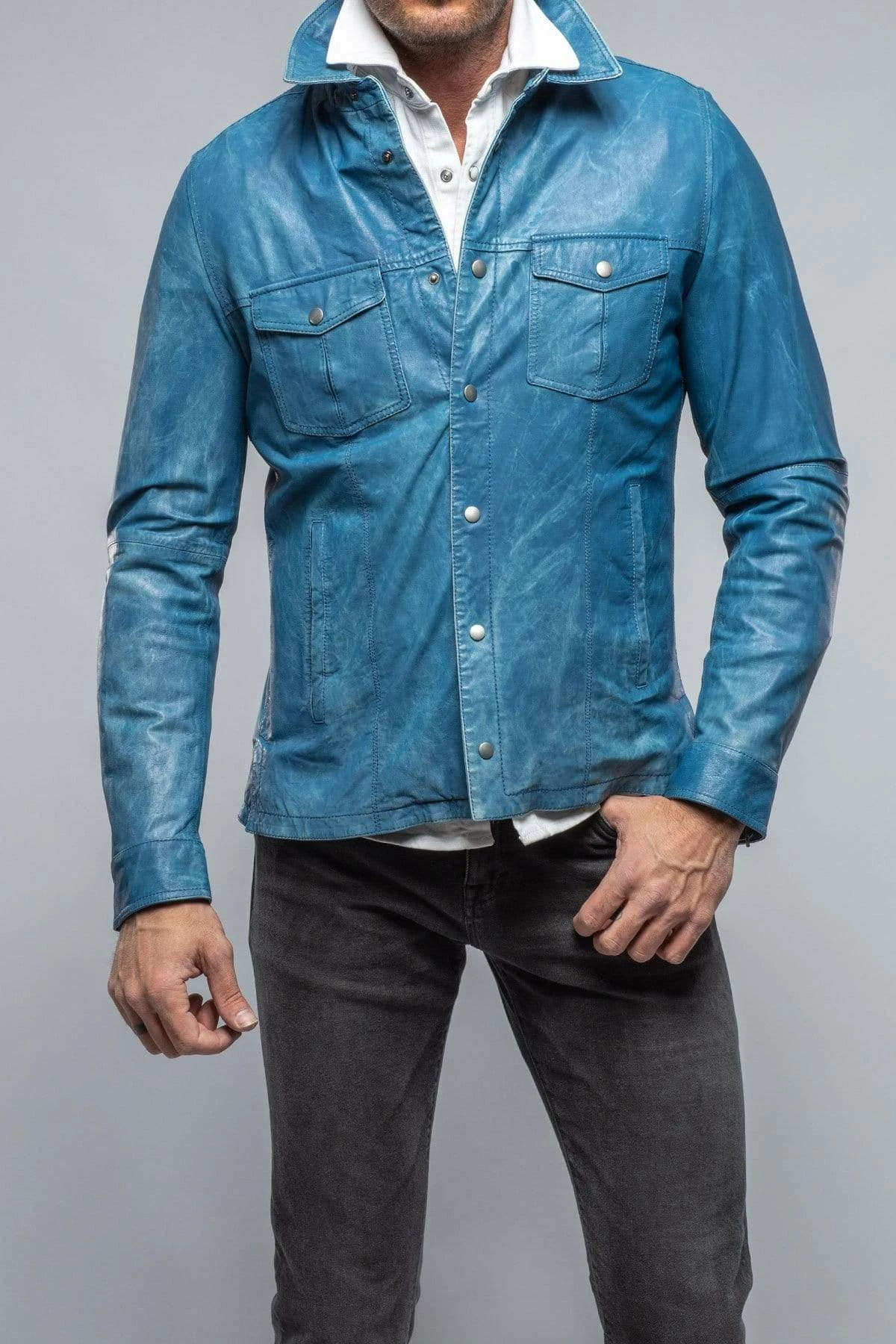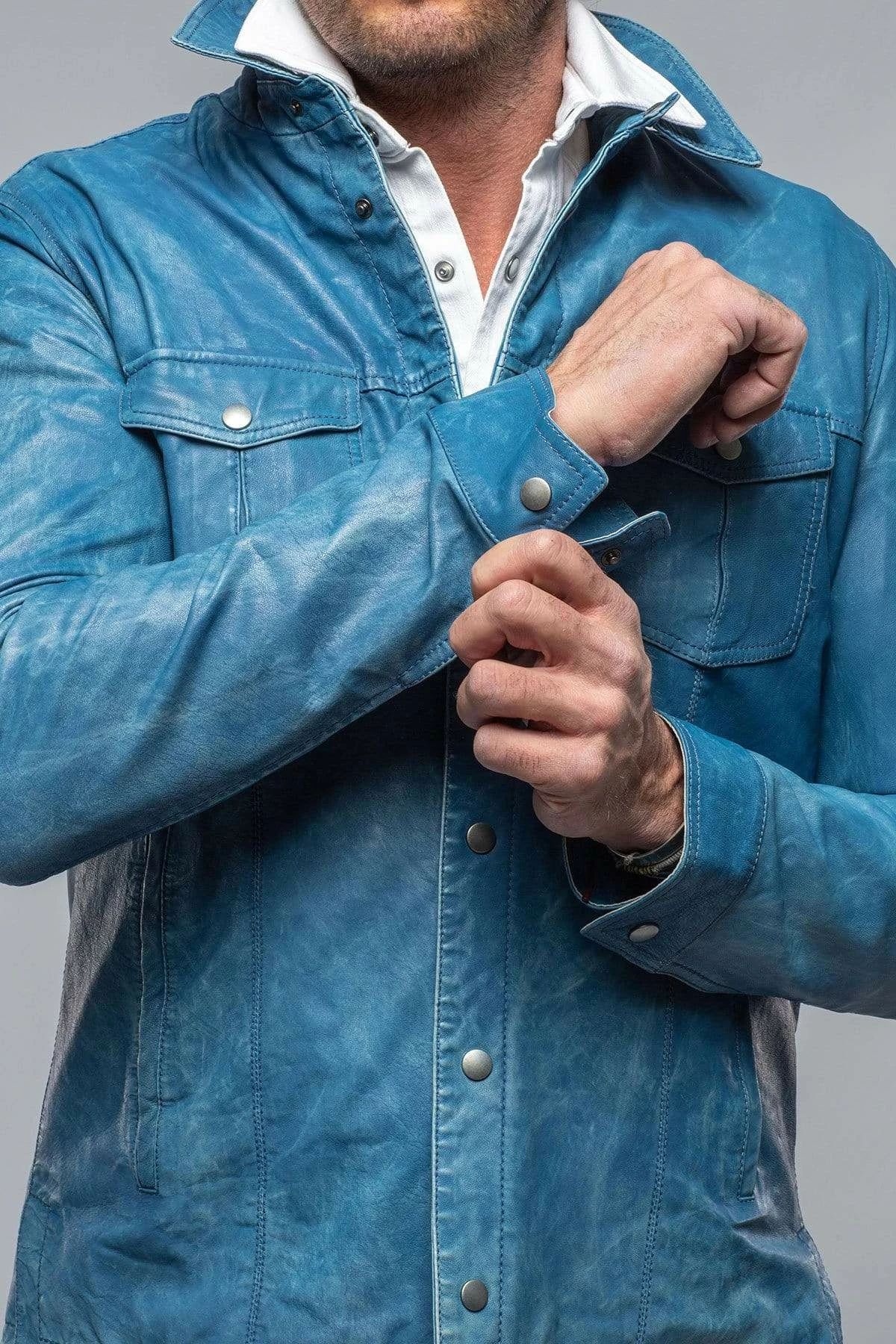 Shirt jackets: our go-to layer for being out among the crisp breeze and in-between seasons. Toeing the line between heavy shirt and light jacket, these versatile leather pieces work as either. They wear just as well tailored and worn solo as they do sized-up over a t-shirt or oxford. The Enna leather shirt jacket may fulfill the requirements of both a shirt and a jacket, but it is anything but undecided. Distinctive style, and in the case of hand-washed blue, distinct in color.
