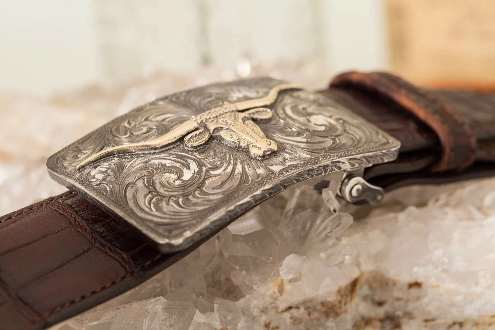 - The Kerr County Longhorn buckle by Comstock Heritage is made with a heavy gauge sterling silver base and 14k yellow gold longhorn motif.