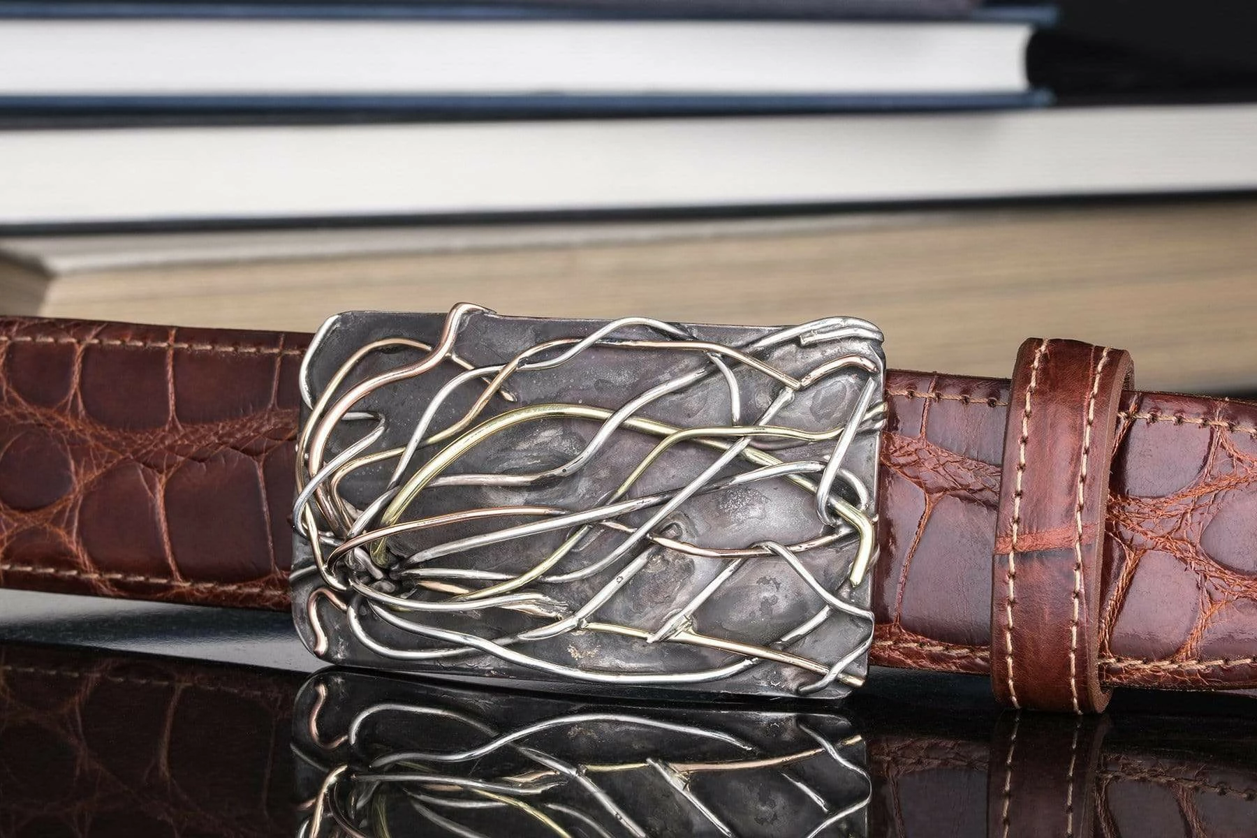 - Mix of twisted multi-colored silver, 14k yellow, red, and 18k green gold twisted wires