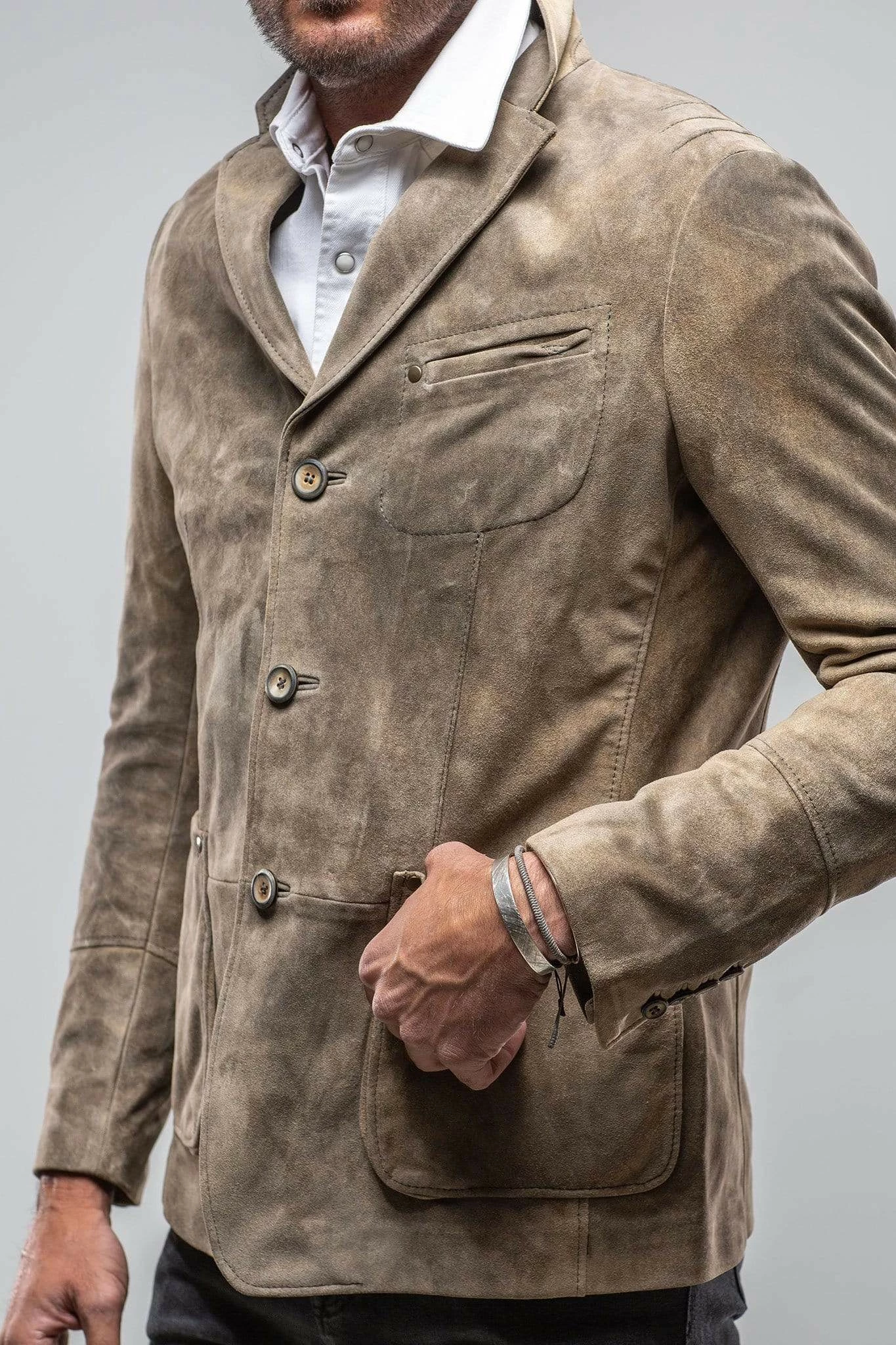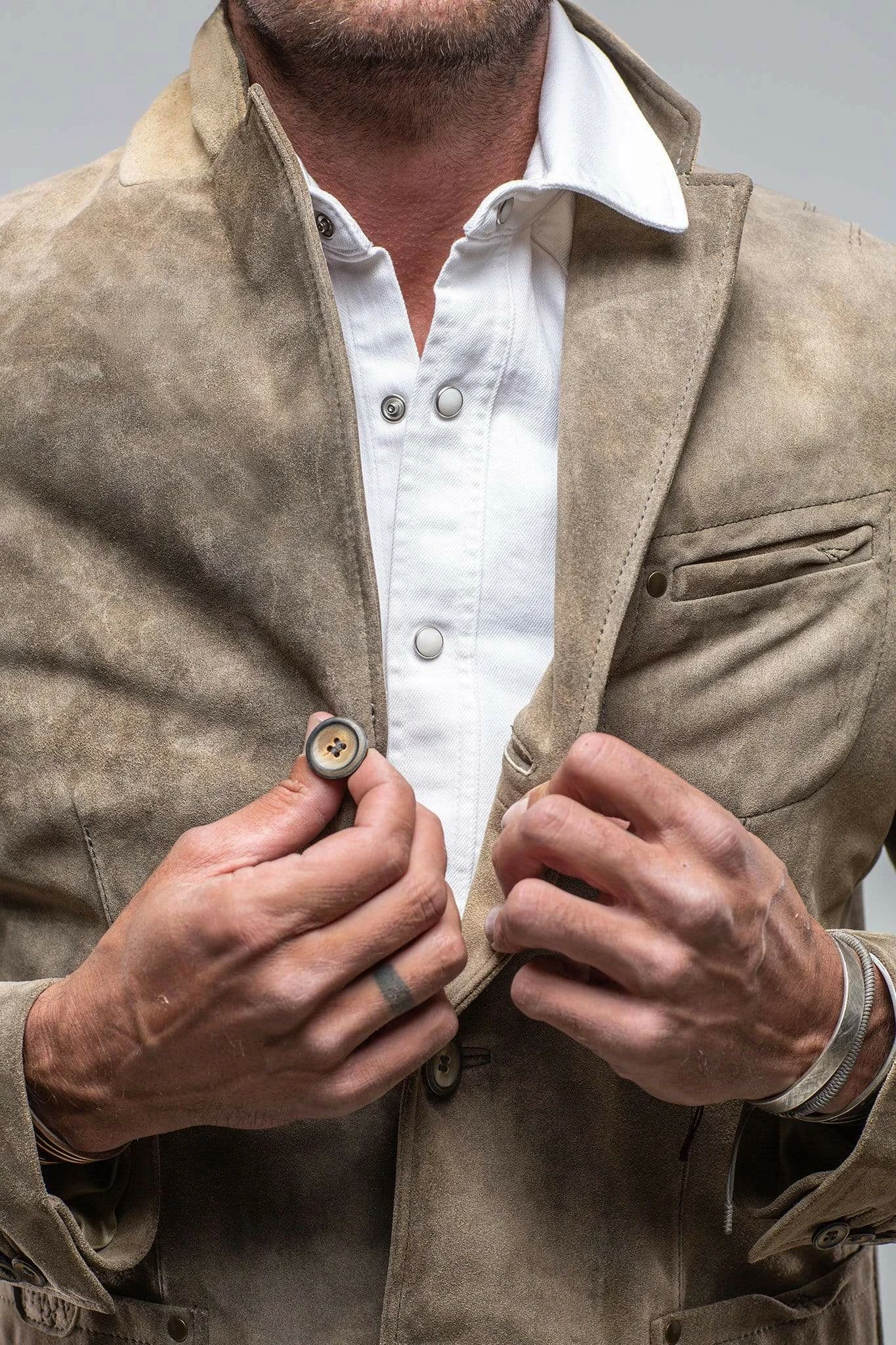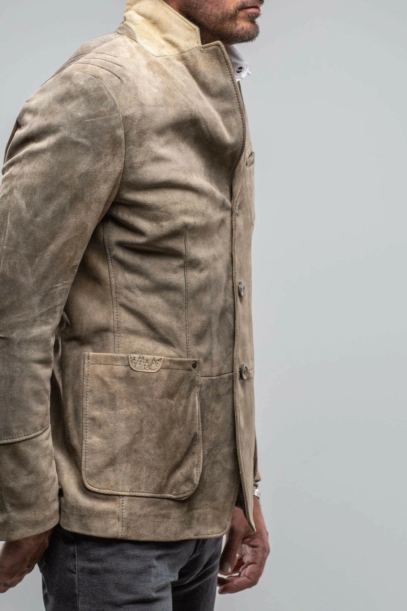 The Bexley jacket by Meindl is an irresistible blend of luxury and classic styling. Makers of fine leather goods since 1683, Meindl is a German family-run business where authentic Alpine traditions continue to thrive. The Bexley, crafted from a fine goat suede hide, is a rugged Alpine style set off beautifully with traditional stag horn buttons and slight distressing to the skin, but not at the cost a traditionally tailored silhouette.