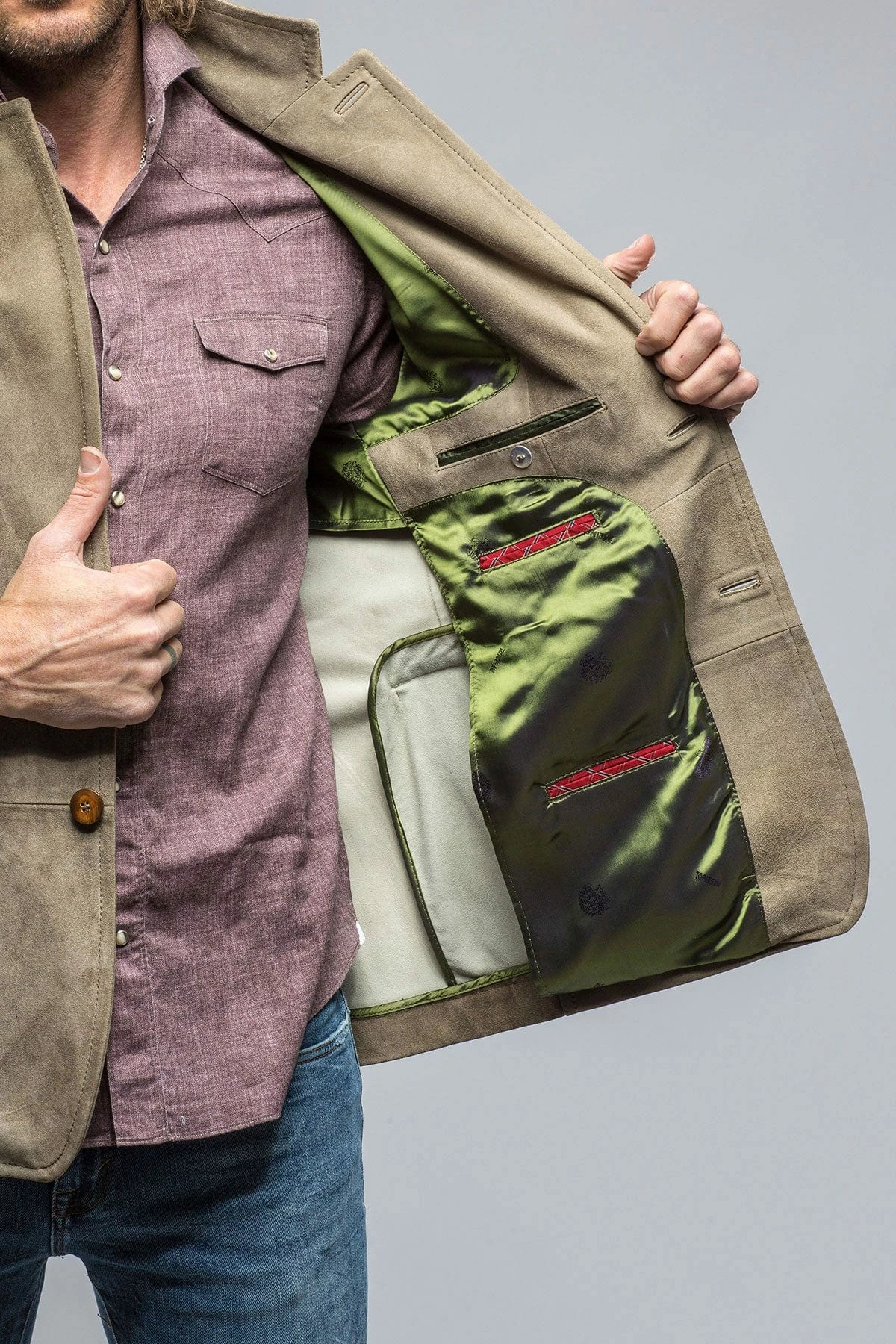 An alpine-inspired sport coat blends luxury and classic styling. The Kensignton jacket made by Meindl, German makers of fine leather goods since 1683, is crafted from a wild red deerskin that has been meticulously tanned using a process dating back thousands of years. The transformation from the rawhide to a finished jacket takes over three months with great care, skill, and experience applied at every stage.