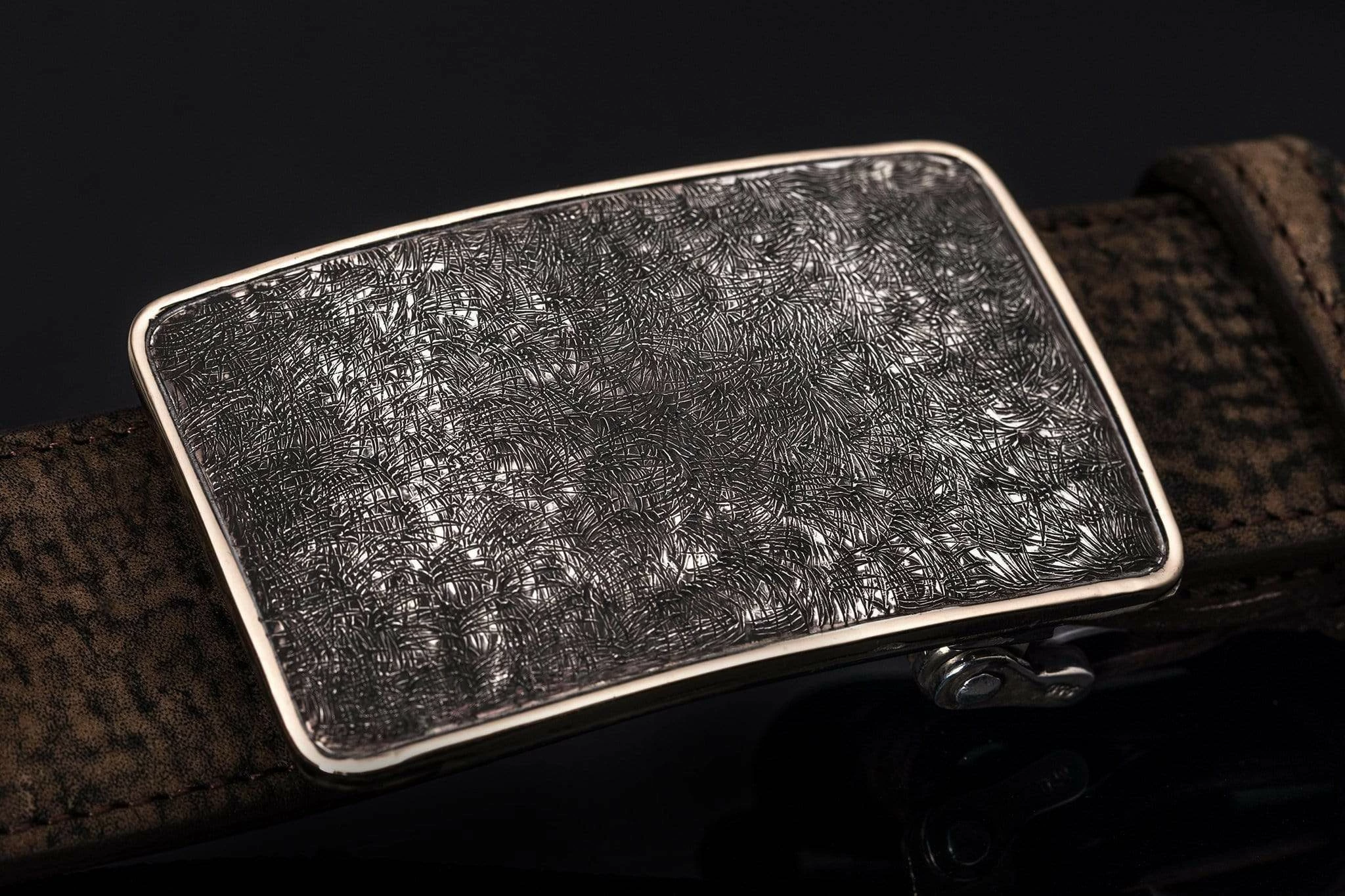 - Large sterling silver rounded corner “Mason” shape with a wide sterling silver hand cut border, interior Florentine center.