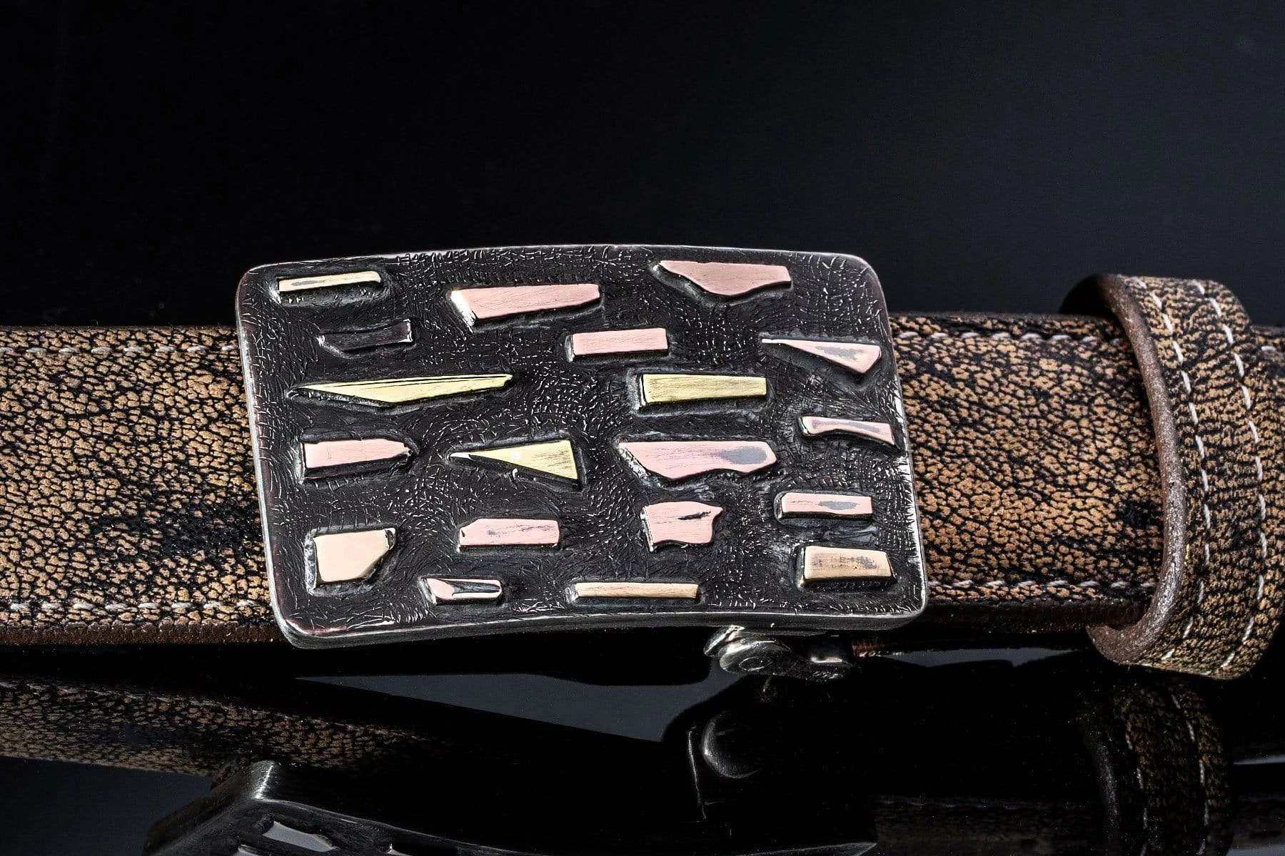 - The Mid Century Modern is an exclusive Comstock Heritage web piece created with style and history in mind. Starting with a Sterling silver “Mesa” shape buckle base that has been antiqued for a darker finish, we then added random hand cut 14k yellow and 14k rose gold pieces throughout.