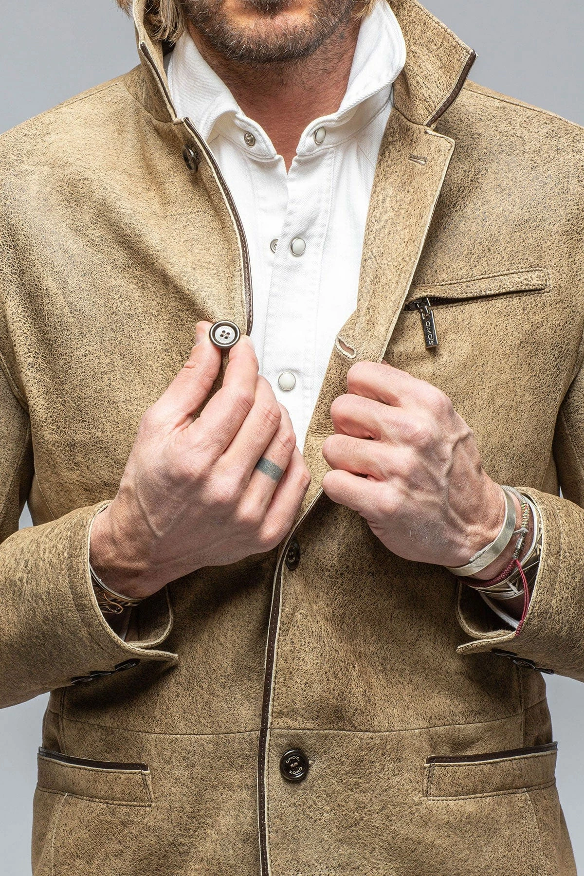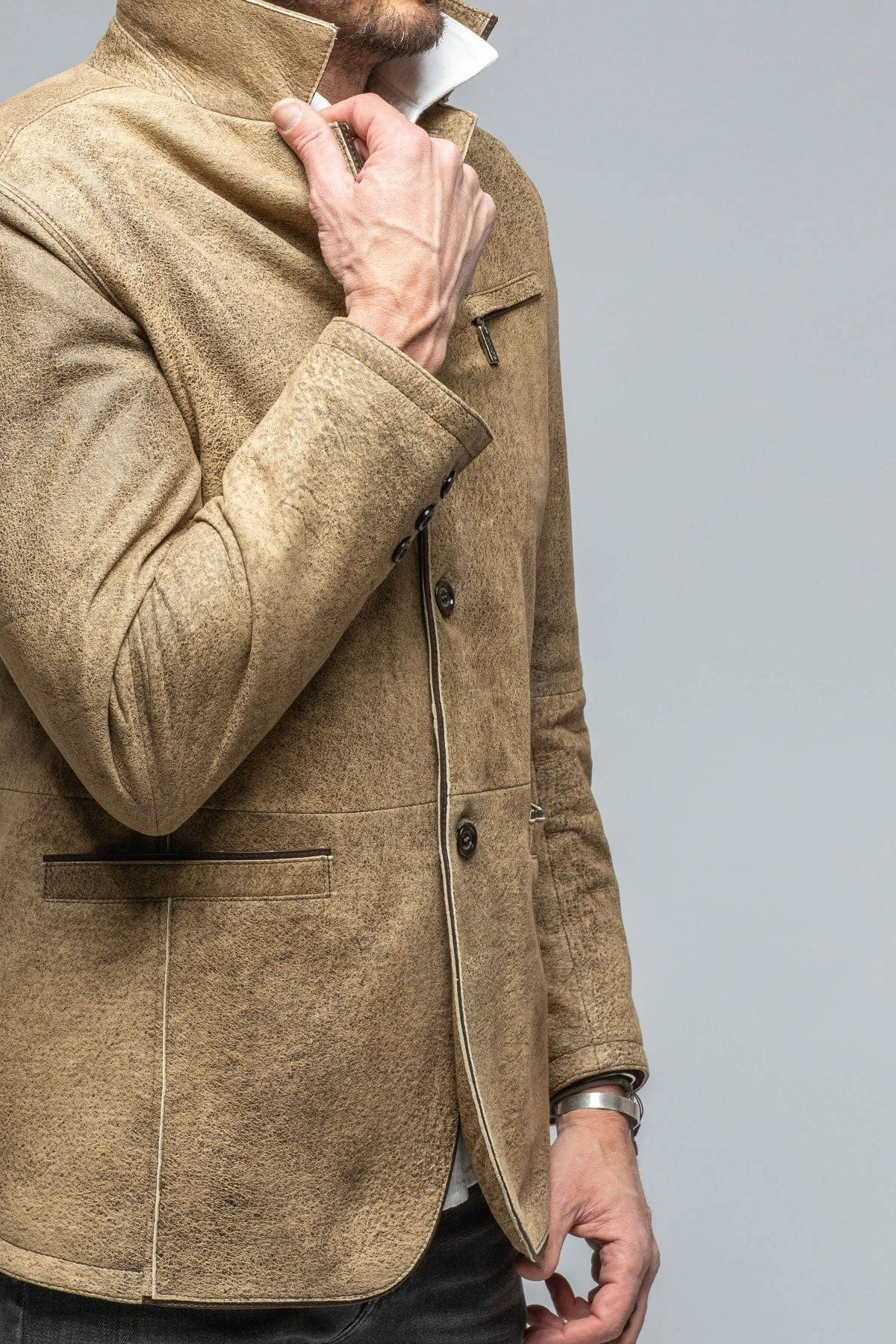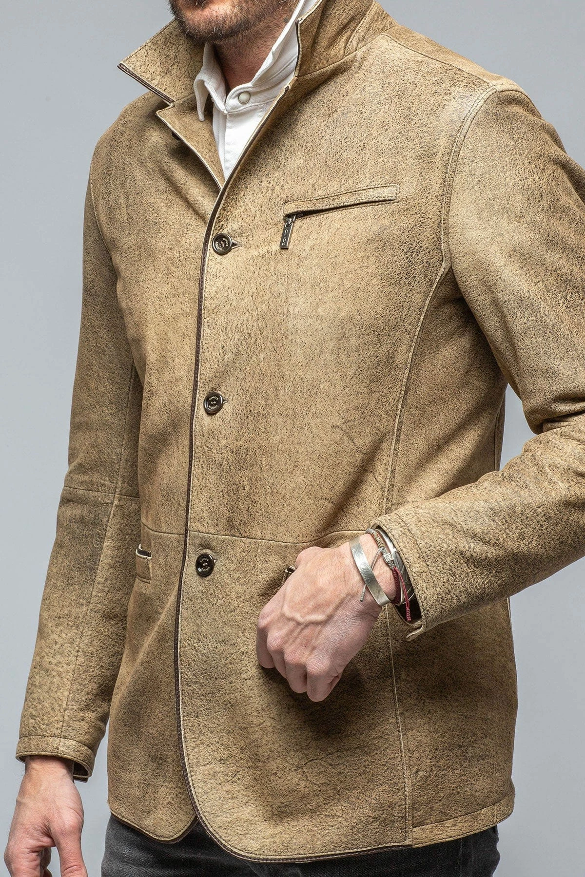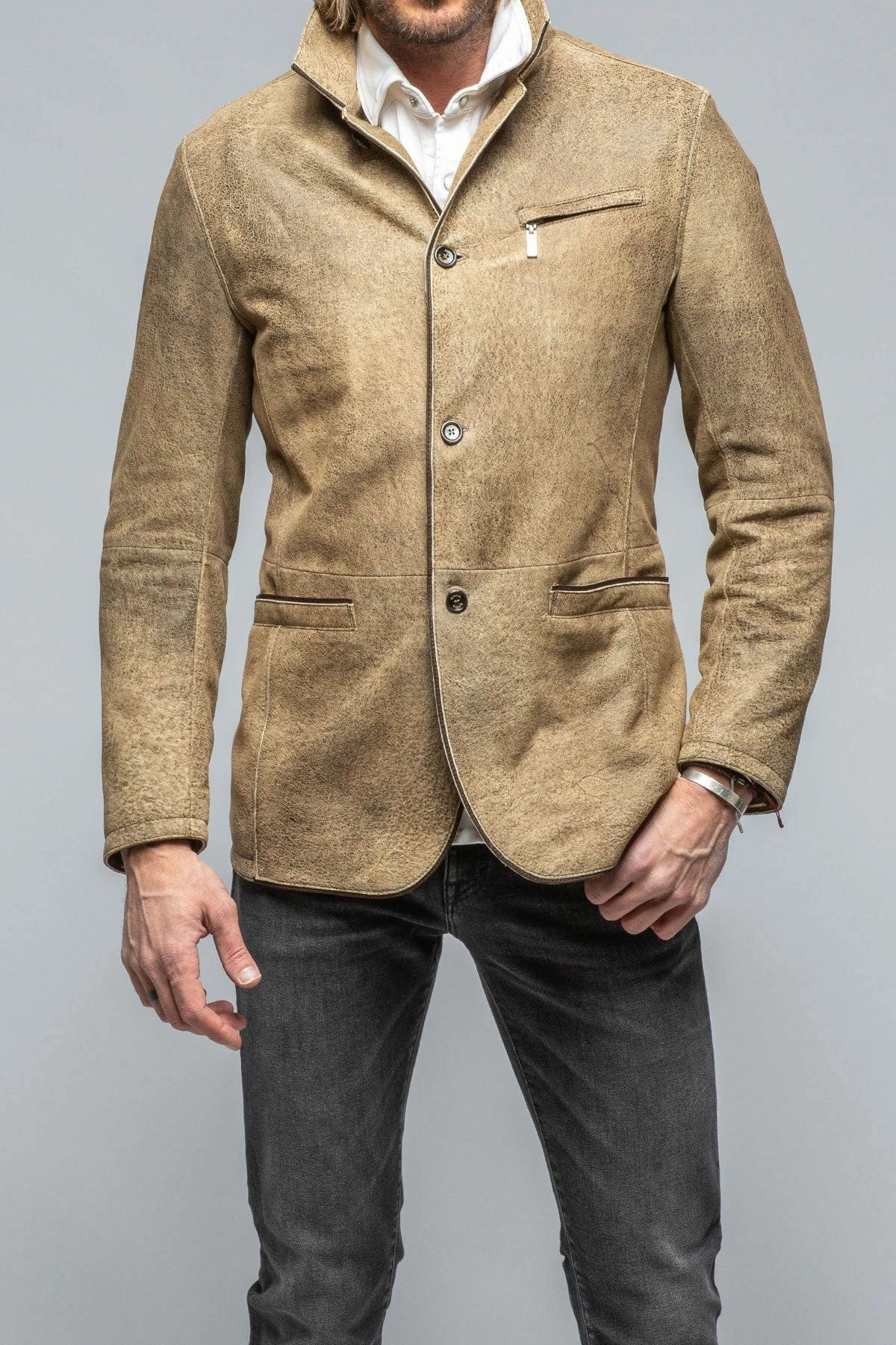 One of our favorite mid-weight leather outerwear pieces, Gimo’s Mulholland is a transitional season staple. Made from a beautiful hand-distressed goatskin leather, the Mulholland has a distinct vintage look and feel.