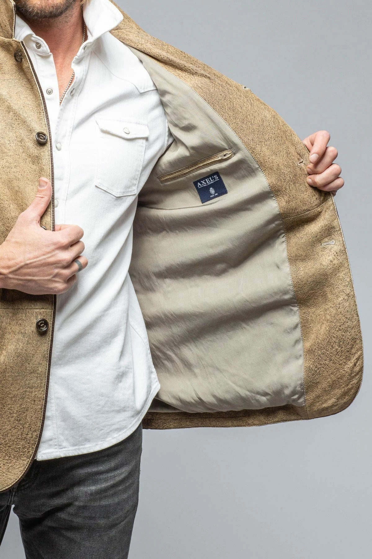 One of the most interesting and unique features of this jacket is its sport coat-style construction with a three-button front, double besom pockets, single-vented back, and fully lined interior. This jacket has a subtle but appreciable tone of elegance that balances its invitingly casual appearance. Its classic fit and mid-range weight allow easy layering, making the Mulholland an ideal fall wardrobe foundation. Other features include a zipper breast pocket and three functional interior pockets.