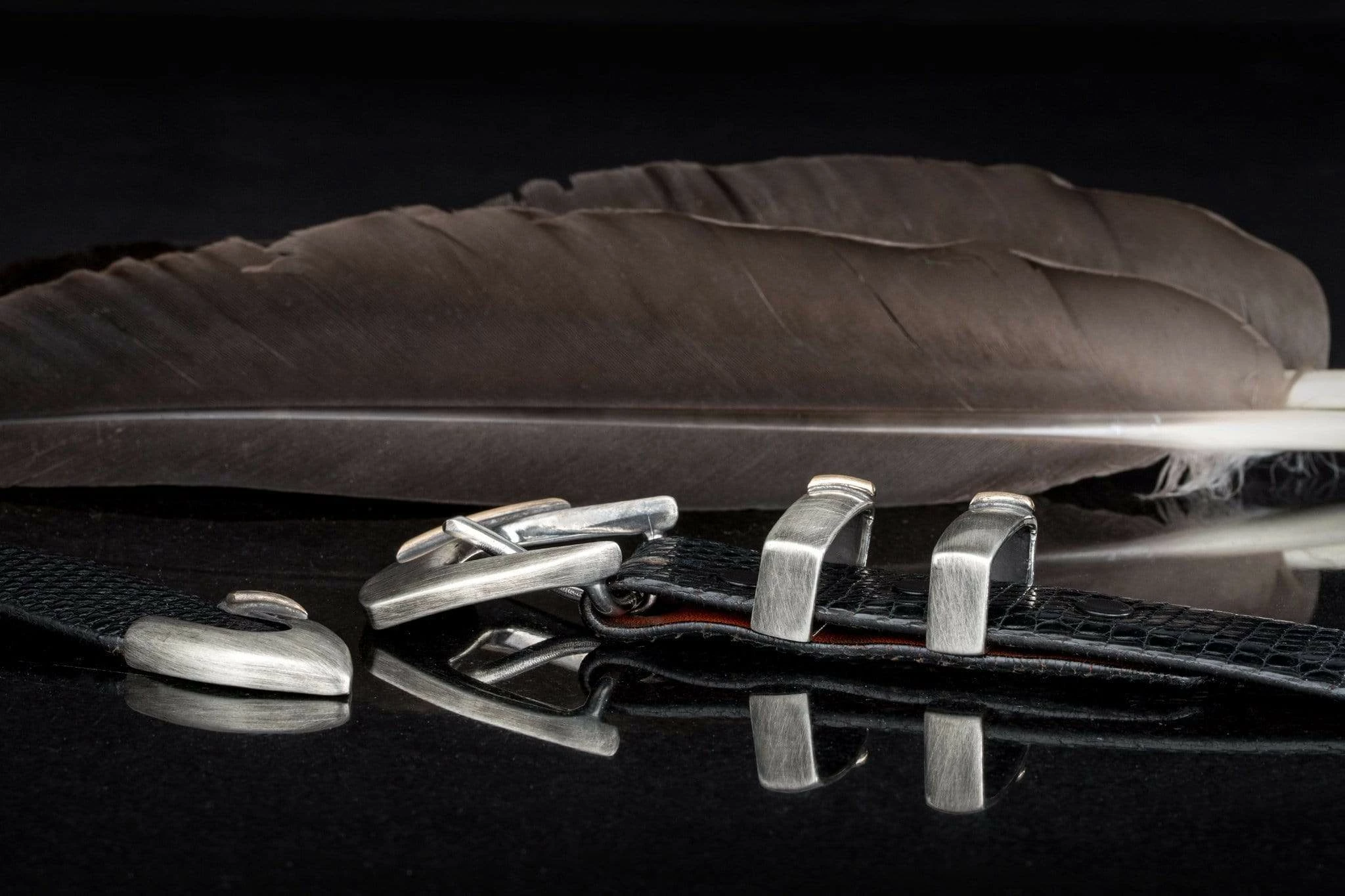 - Sterling silver hand cast Pitkin buckle set