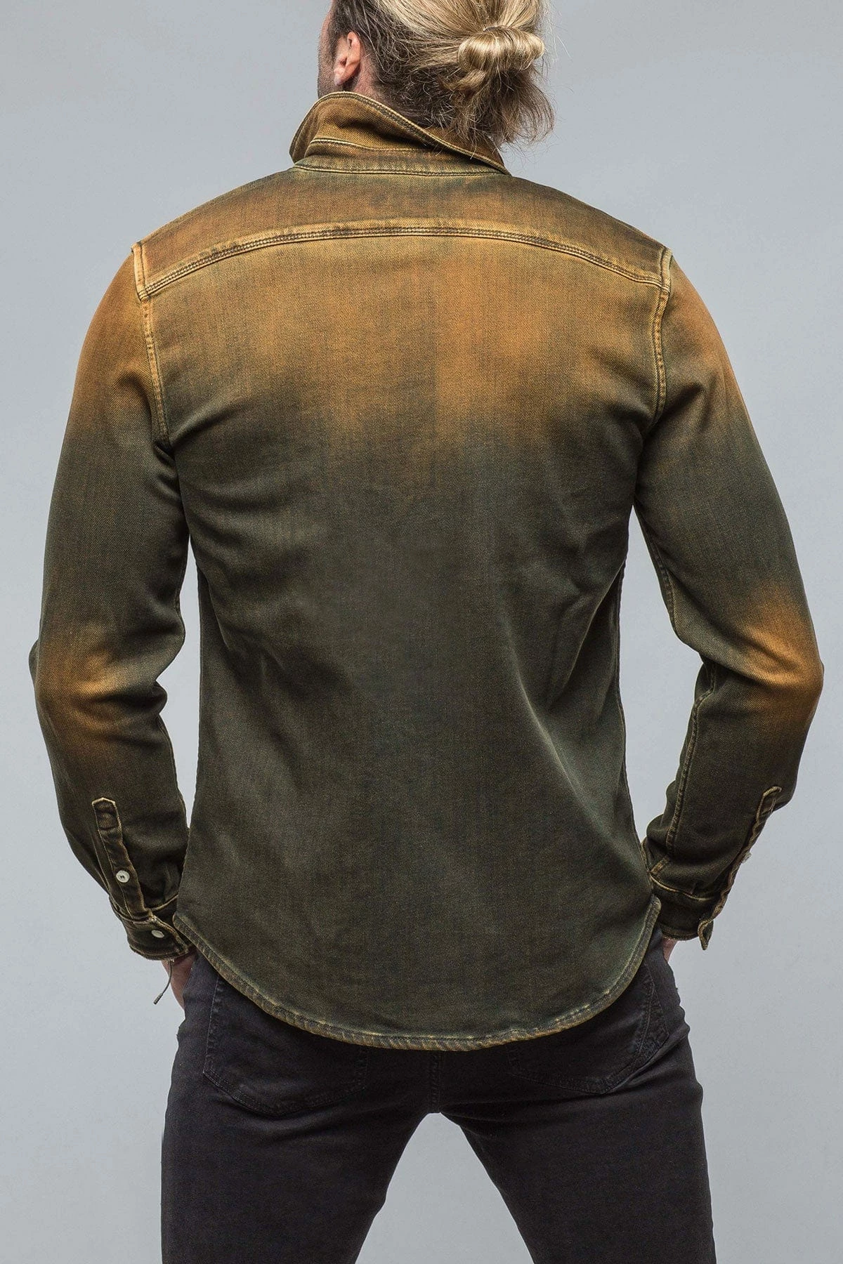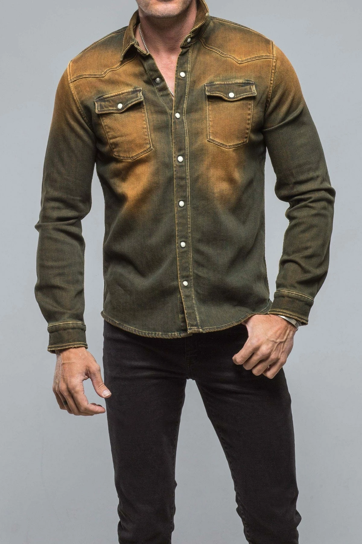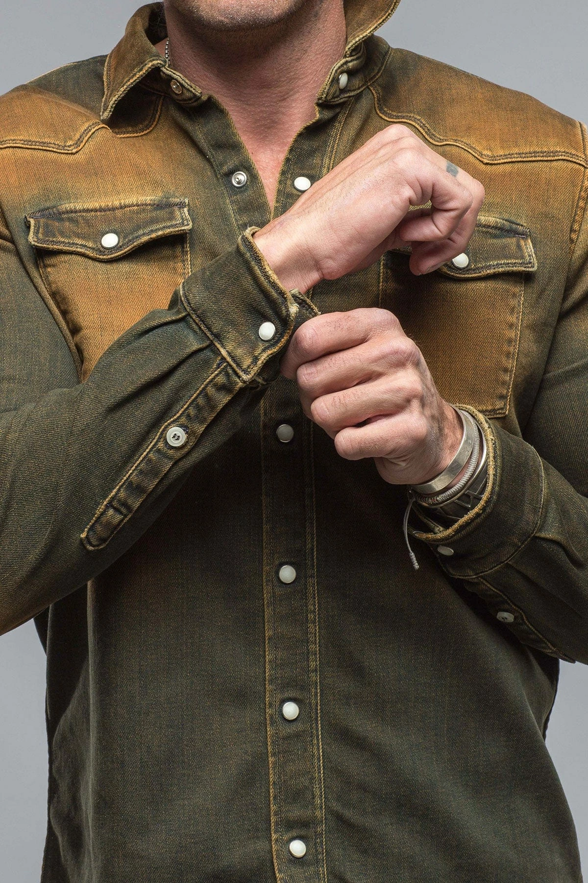 We have for years been searching for a fabric to create the perfect Axel’s denim shirt; one with enough stretch for comfort, and a beefy, not ‘boardy’ look and feel. Finally, we’ve found exactly what we’d been searching for… but better! Individually dyed, washed and vintaged by Italian artisans, the Roper denim snap shirt features profound Western inspiration, but with a precision that only the Italians can accomplish with clothing.