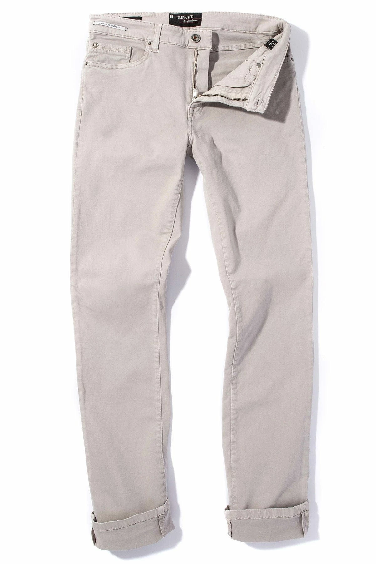 - Zipper fly with button closure
