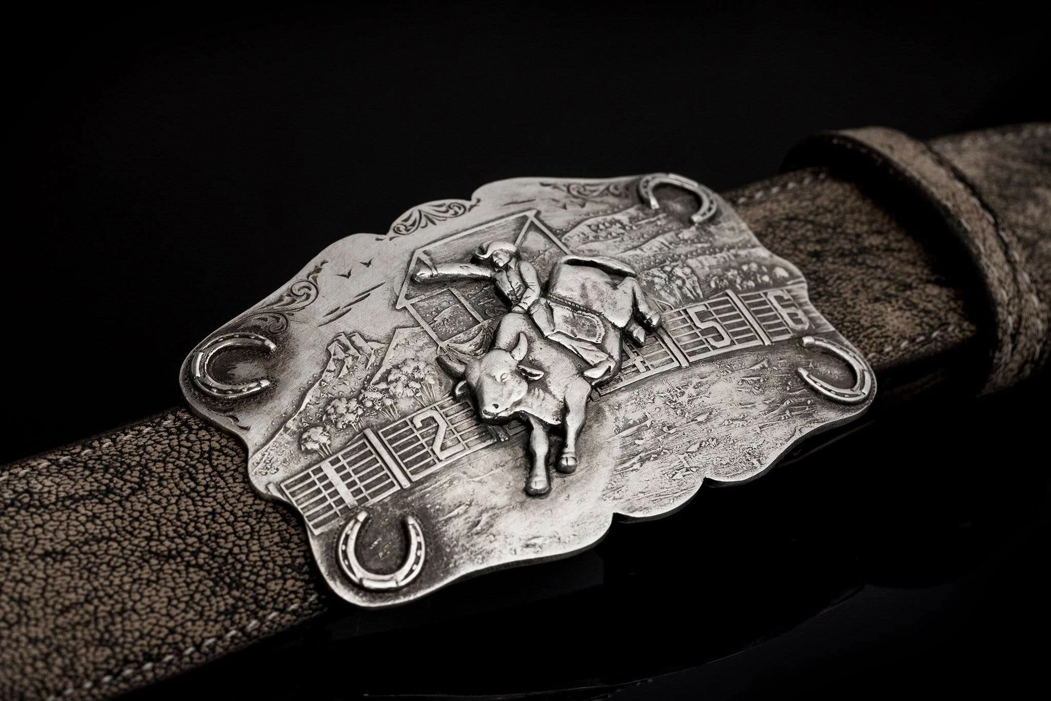- Figures In Corner And Center: Bronc, Stars, Bull Rider & Horseshoes
