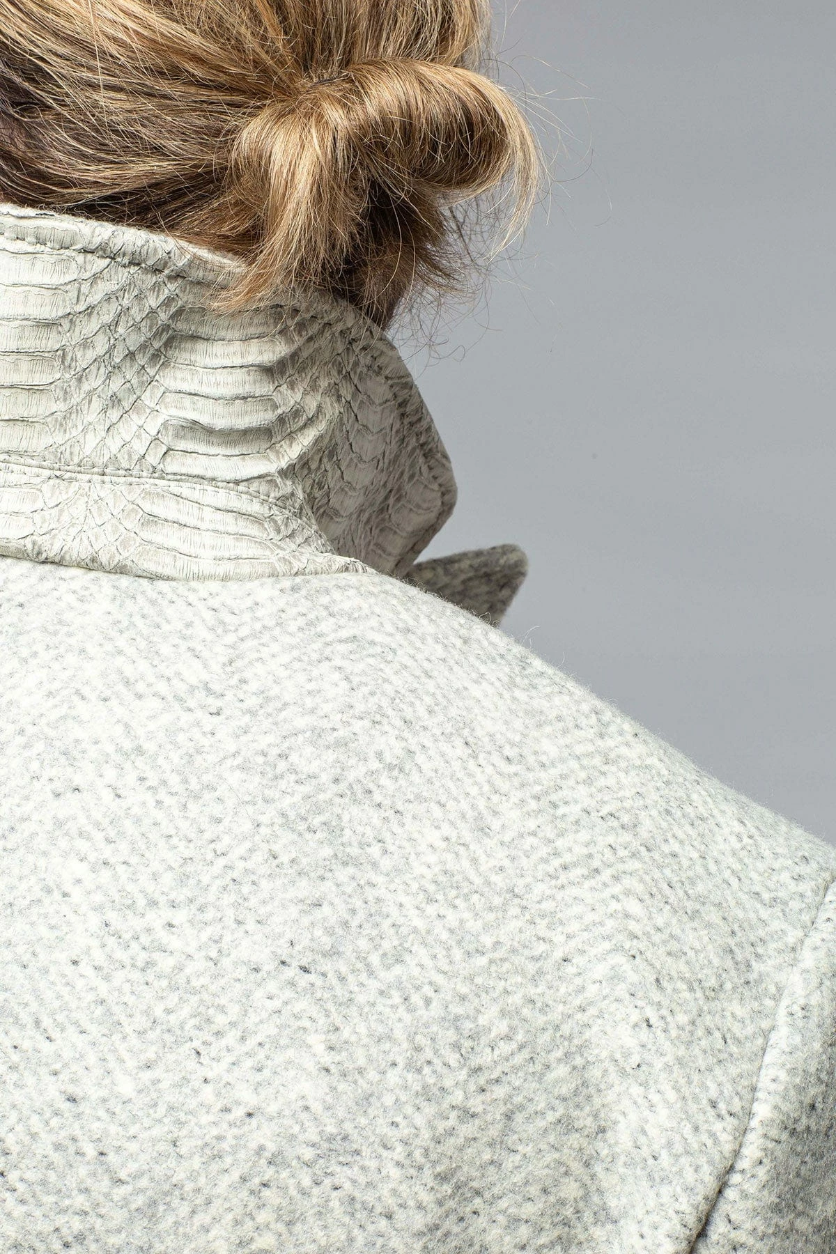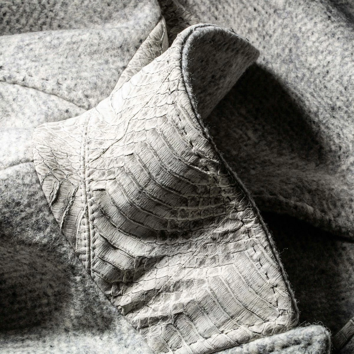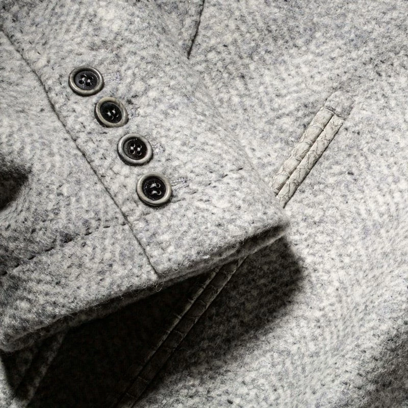 Inspired by the timeless nature of well-made garments, the Tasman is grounded in the origins of tradition, but not bound by it. A sport coat silhouette rendered in an irresistibly soft double-faced wool and baby alpaca blend, the traditional topcoat gets a fresh update with a well-tailored fit defined by a natural shoulder and three-button construction. Style points such as the peak lapel, the striking melange herringbone pattern, and the genuine snakeskin under-trim elevate the Tasman into a league of its own. A special edition piece (only 50 made worldwide), the jacket is inspired by classic sportswear and refinement shaped by centuries of sartorial tradition.