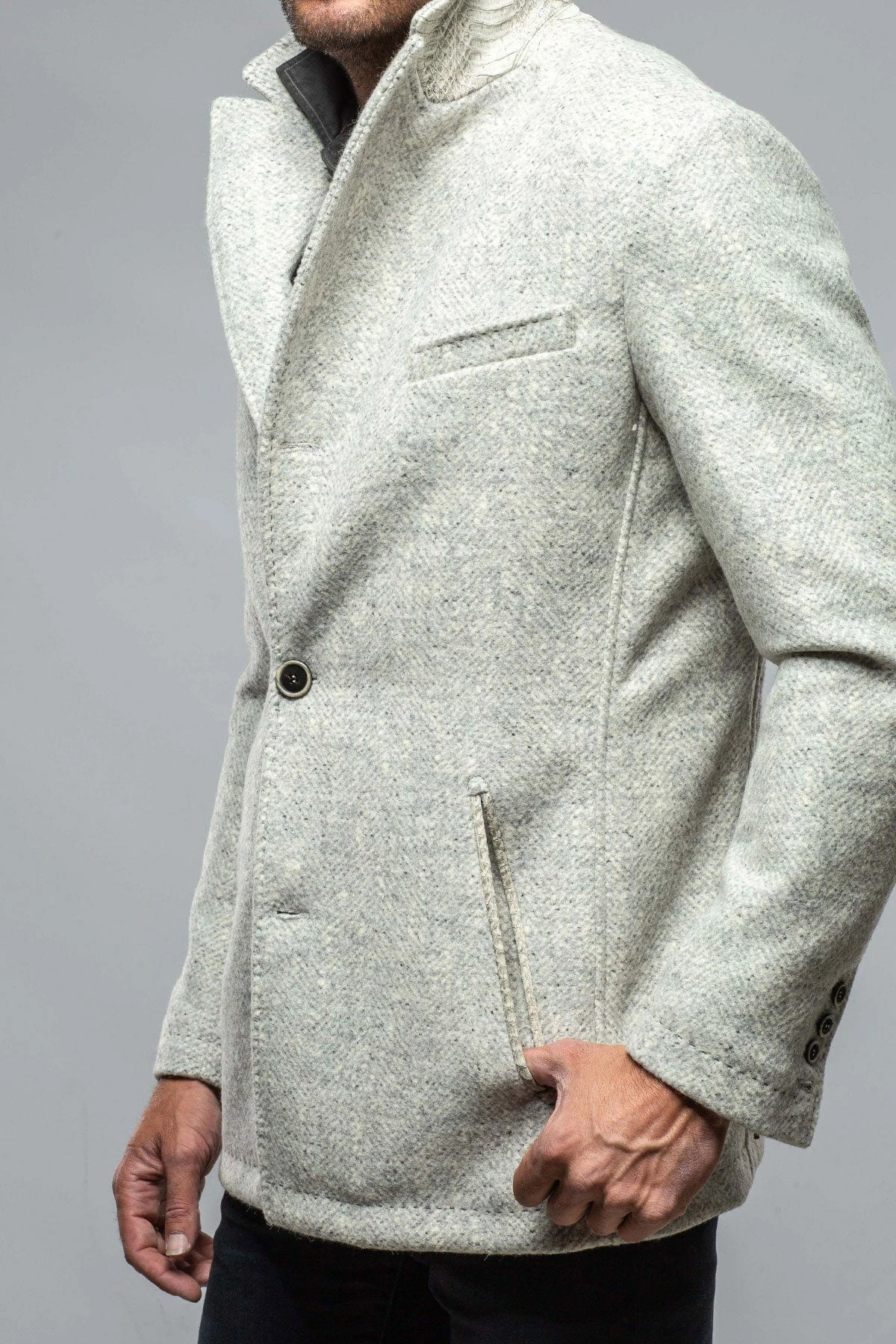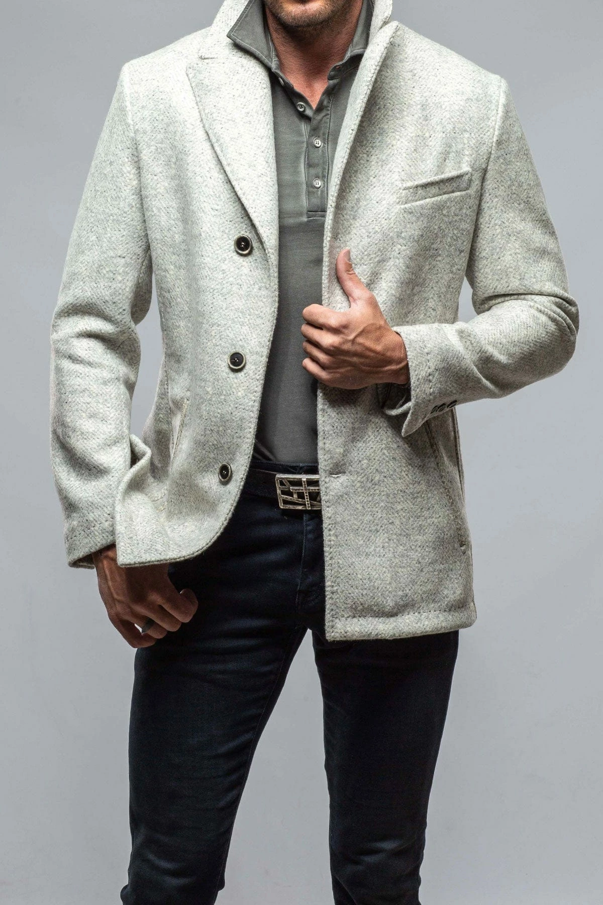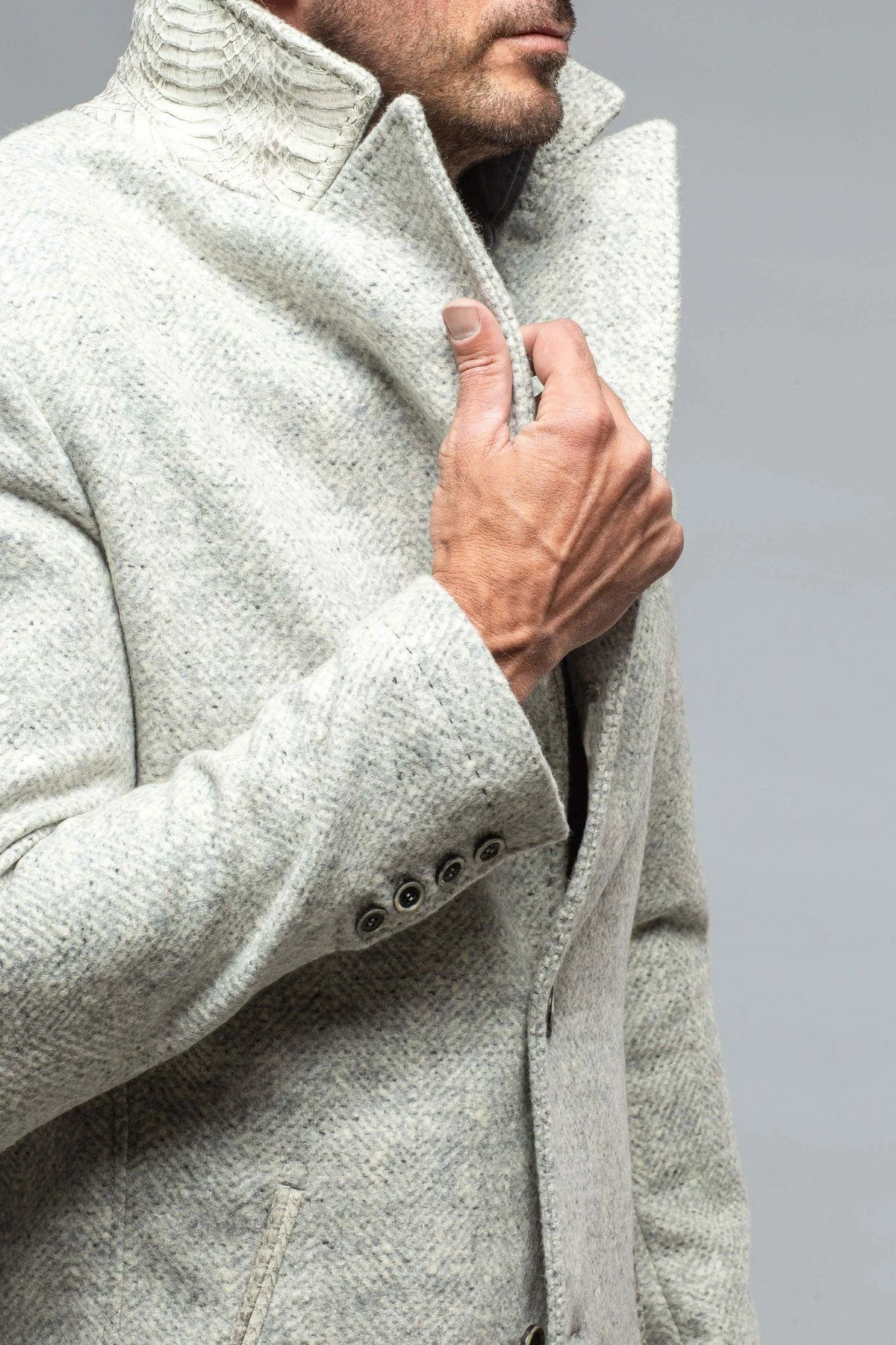 Inspired by the timeless nature of well-made garments, the Tasman is grounded in the origins of tradition, but not bound by it. A sport coat silhouette rendered in an irresistibly soft double-faced wool and baby alpaca blend, the traditional topcoat gets a fresh update with a well-tailored fit defined by a natural shoulder and three-button construction. Style points such as the peak lapel, the striking melange herringbone pattern, and the genuine snakeskin under-trim elevate the Tasman into a league of its own. A special edition piece (only 50 made worldwide), the jacket is inspired by classic sportswear and refinement shaped by centuries of sartorial tradition.