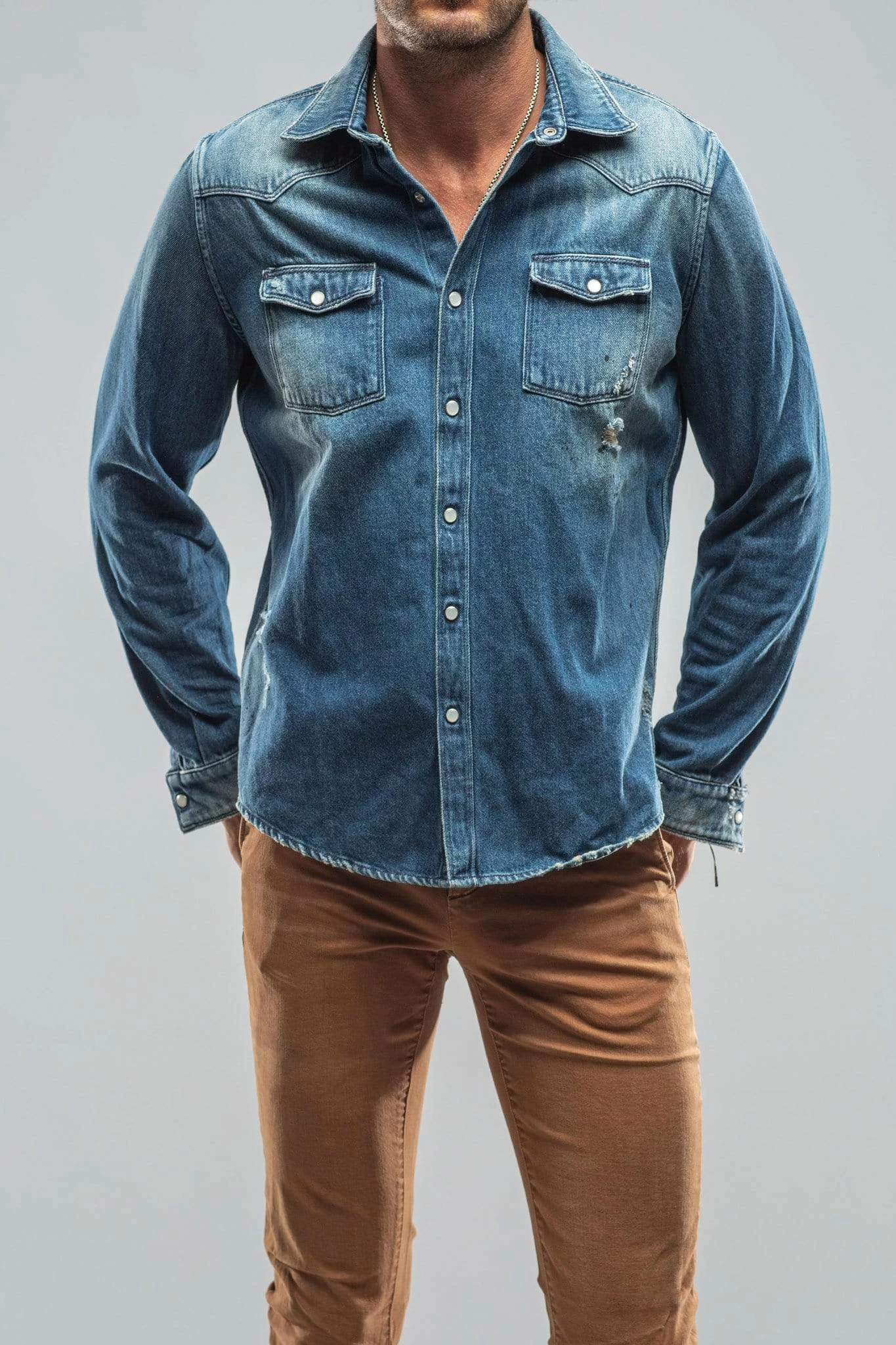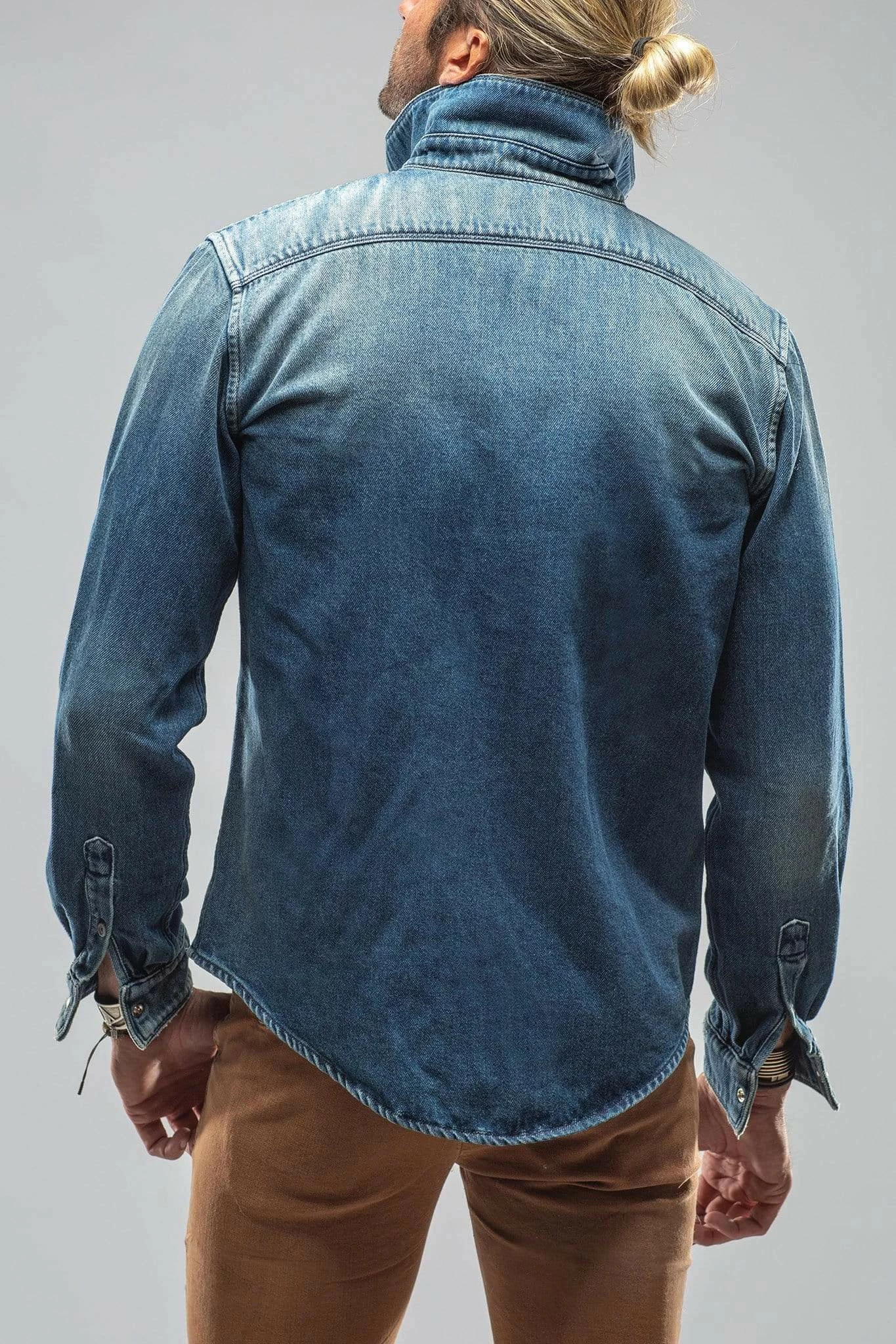 We have for years been searching for a fabric to create the perfect Axel’s denim shirt; one with enough stretch for comfort, and a beefy, not boardy look and feel. Offered in a wide palette of color.