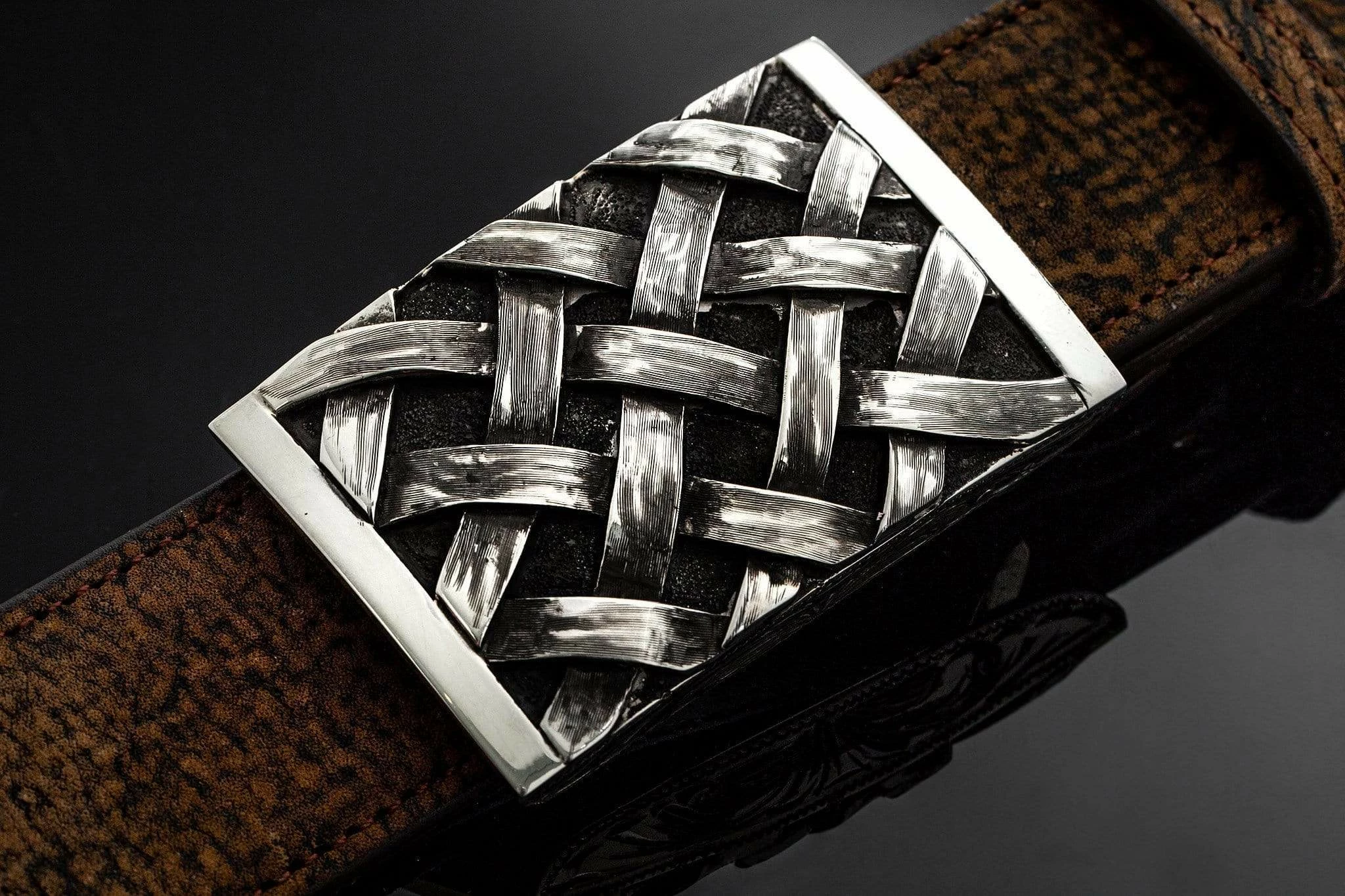 - 3D hand made Sterling Silver buckle with hand-cut basketweave pattern