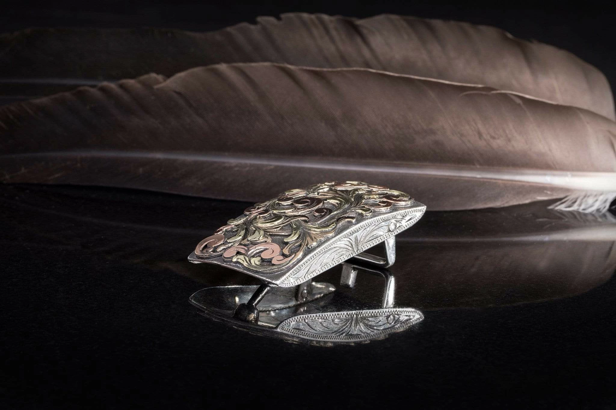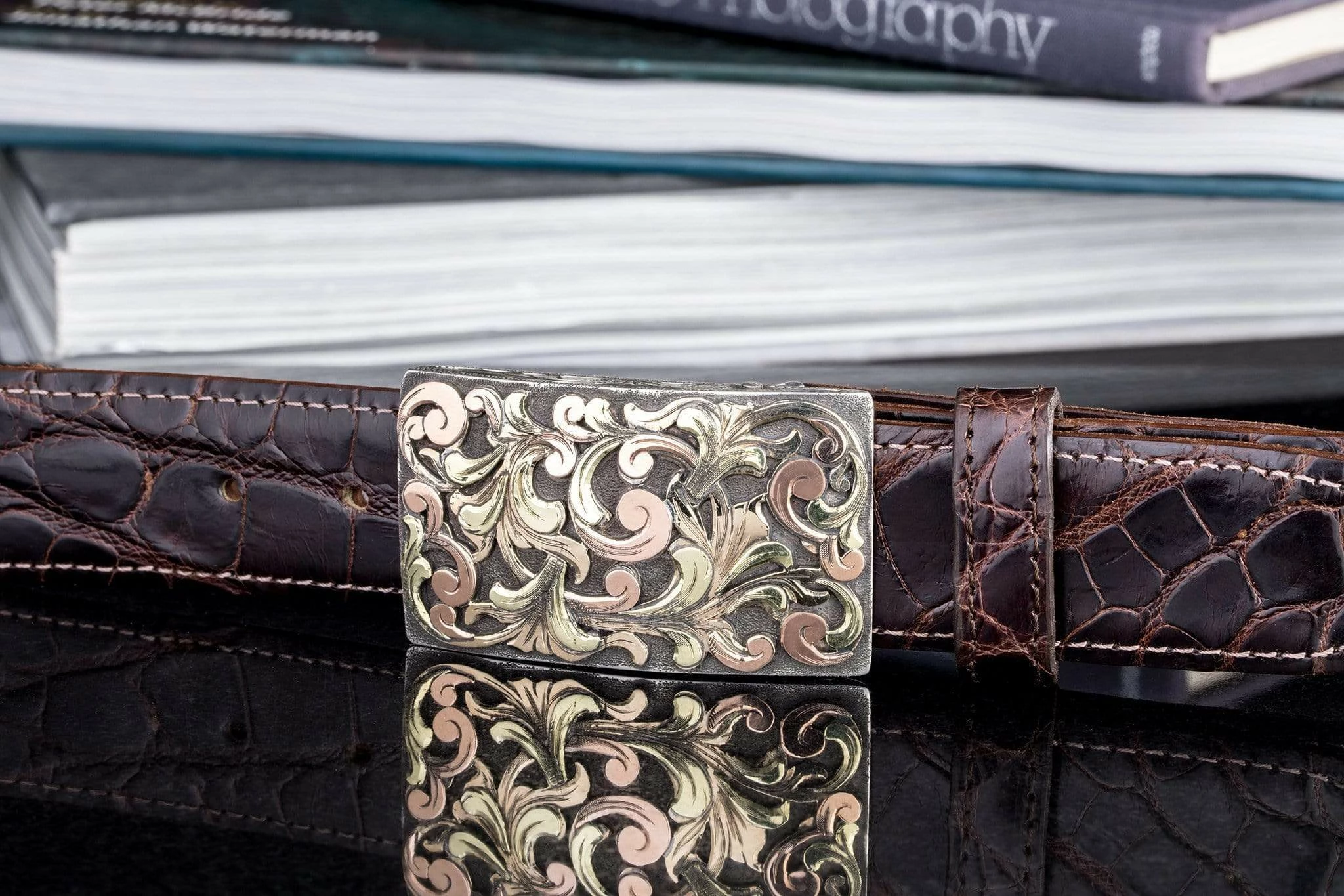 - 14K Green, yellow, and rose gold filigre hand-cut overlay scrolls