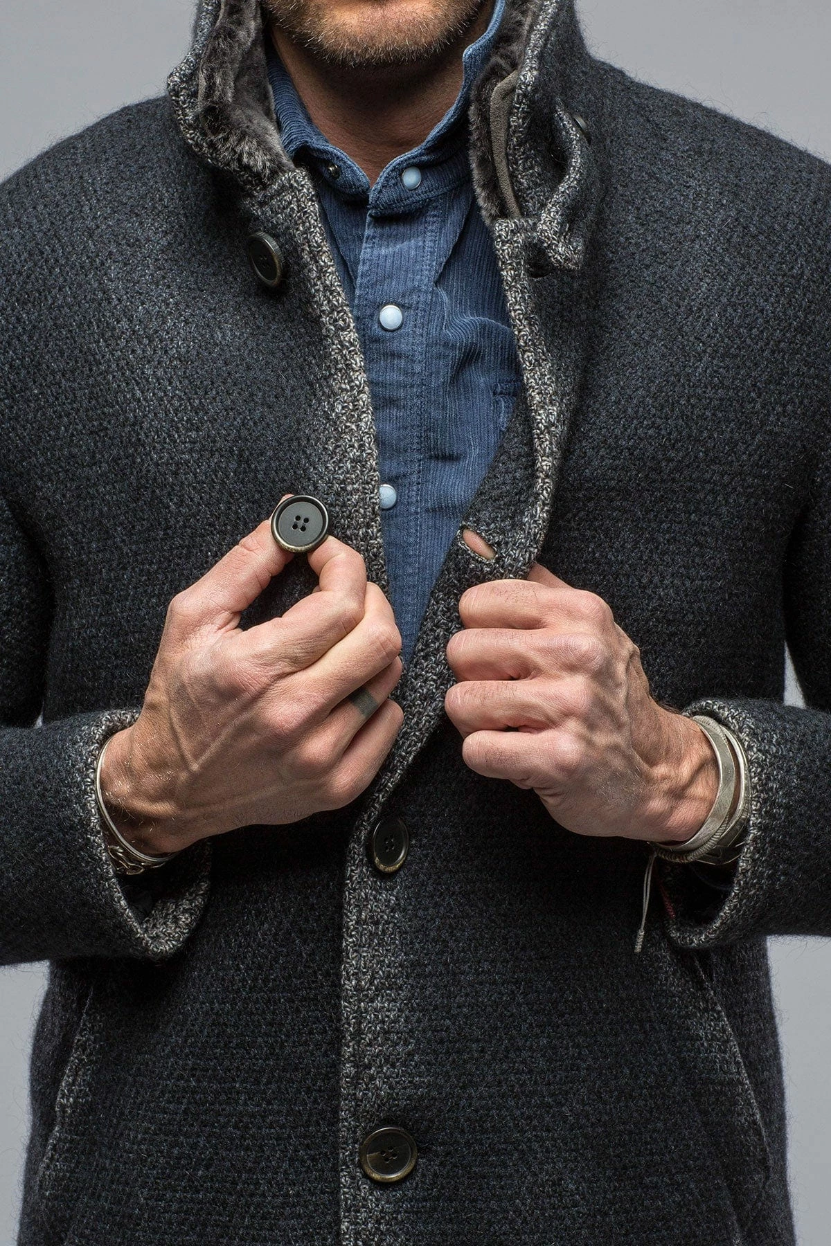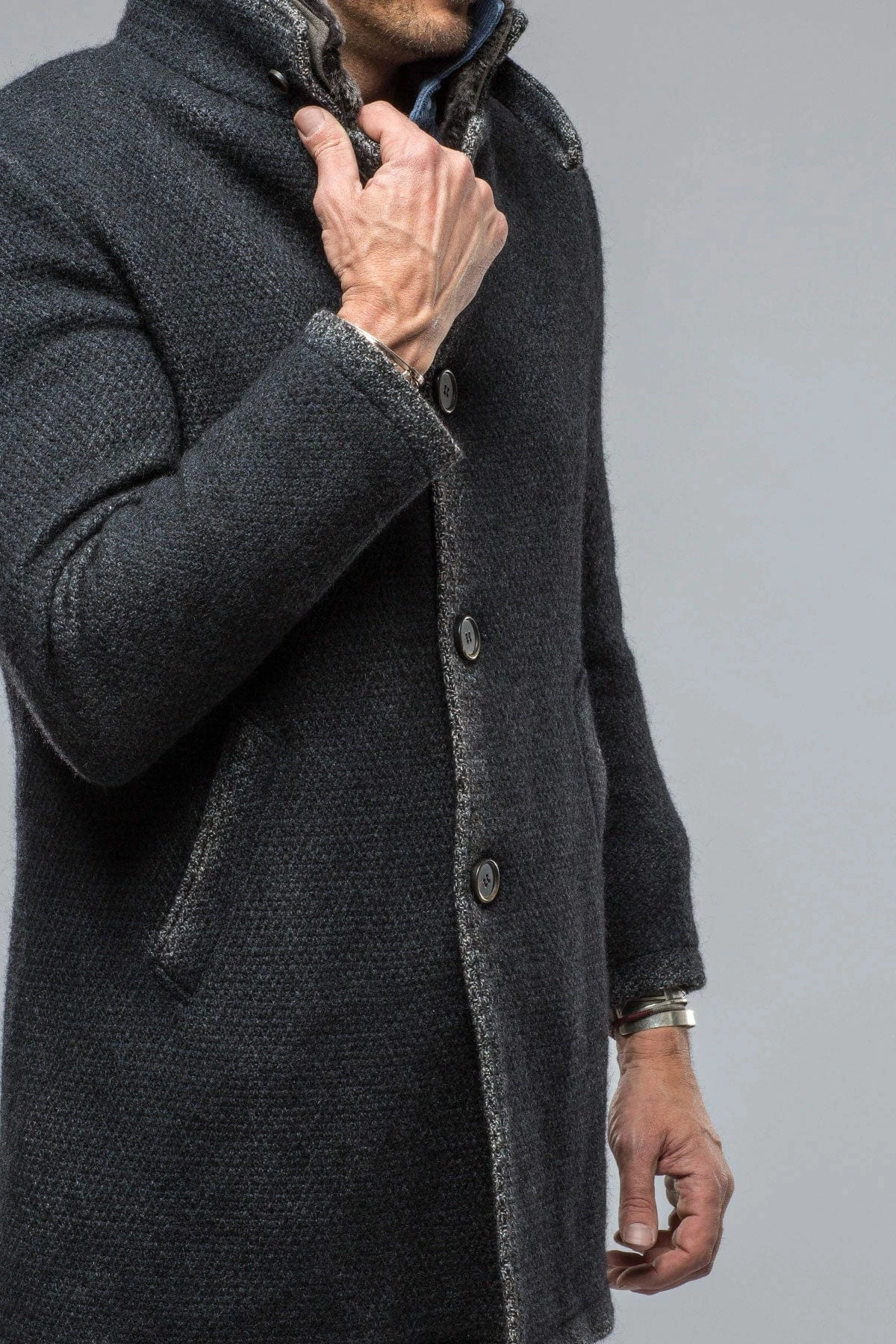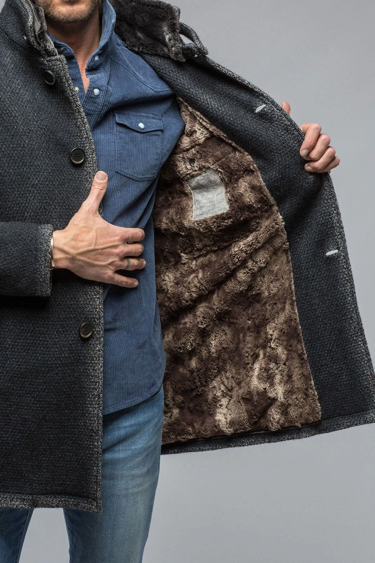 The Winston was made for Axel’s by Gimo’s with a wool-mohair blend knit. Thick, well-textured fabric that registers definitively as a coat, with a sweater’s softness and stretch. Lined in deliciously soft synthetic fur fleece, The Winston is a smart and approachable style sure to be complimented for seasons to come.