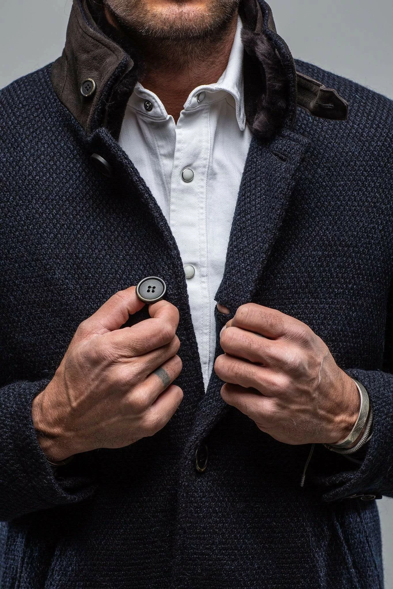 The Winston was made for Axel’s by Gimo’s with a wool-mohair blend knit. Thick, well-textured fabric that registers definitively as a coat, with a sweater’s softness and stretch. Lined in deliciously soft synthetic fur fleece, The Winston is a smart and approachable style sure to be complimented for seasons to come.